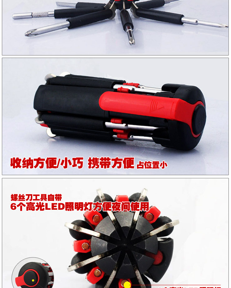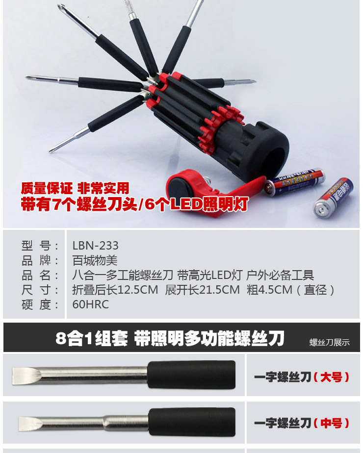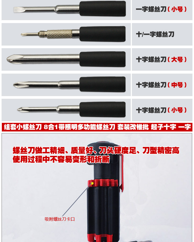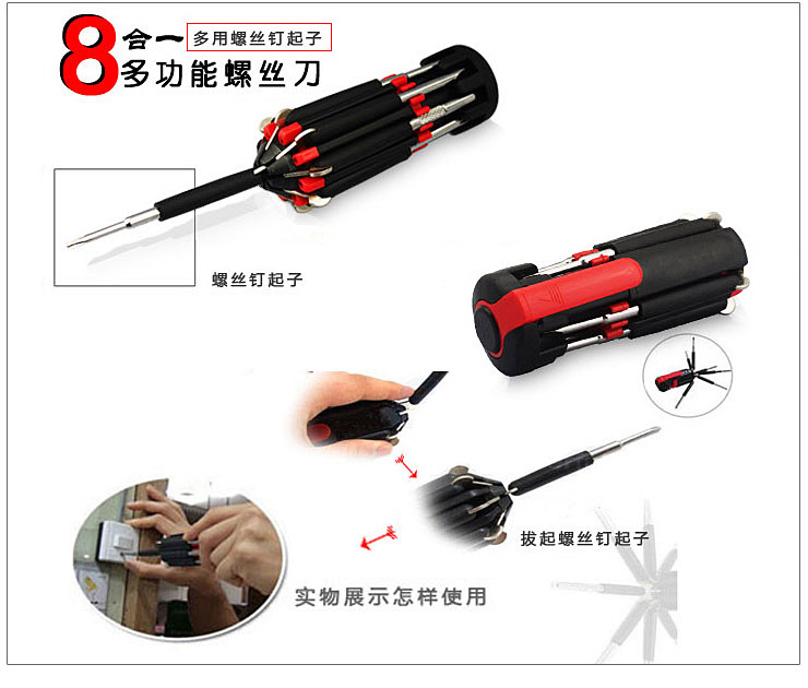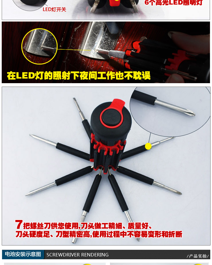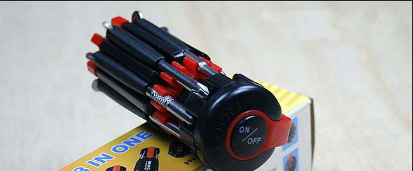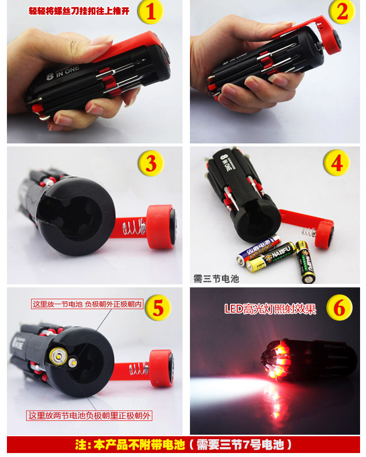 最重要的特点是这款螺丝刀装上两节电池之后,多功能螺丝刀还会亮光,