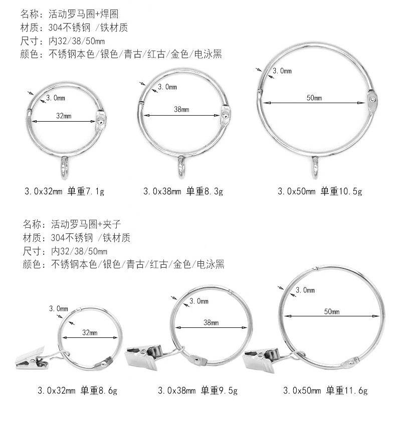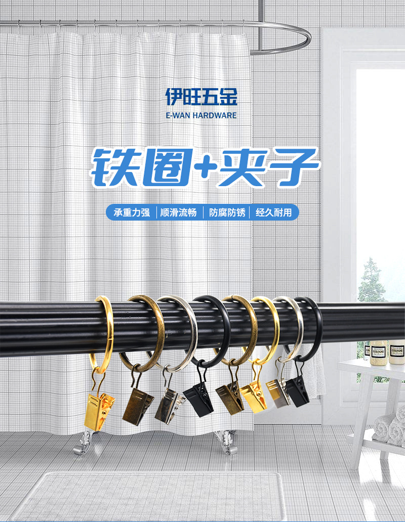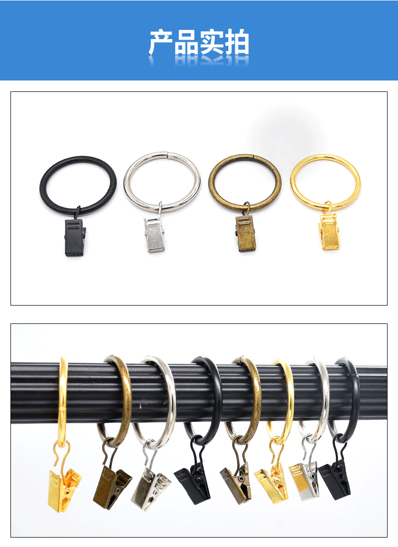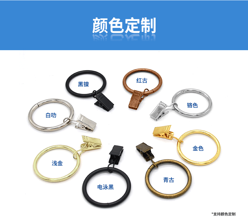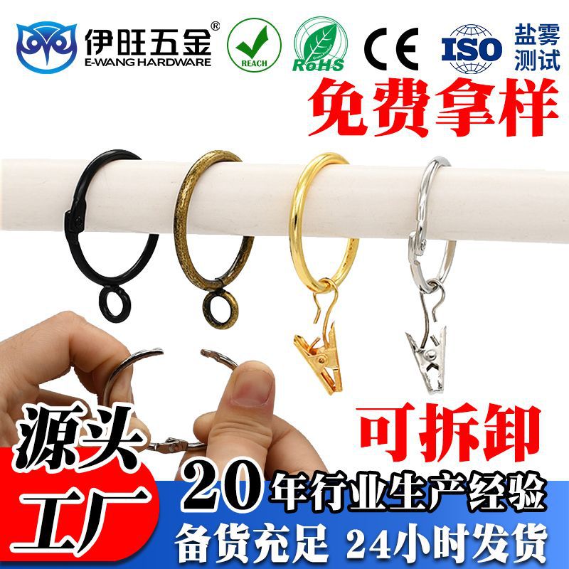 工厂直供金属窗饰配件不锈钢防锈窗帘圈夹子可拆卸顺滑浴帘挂环