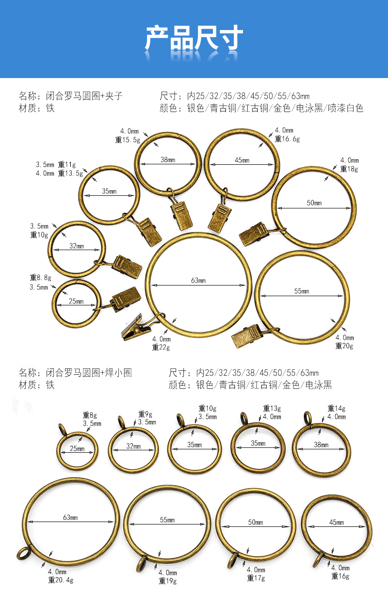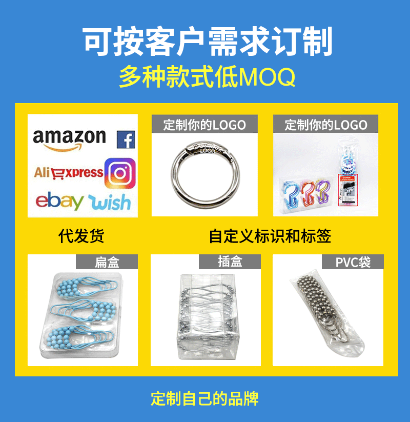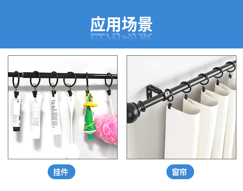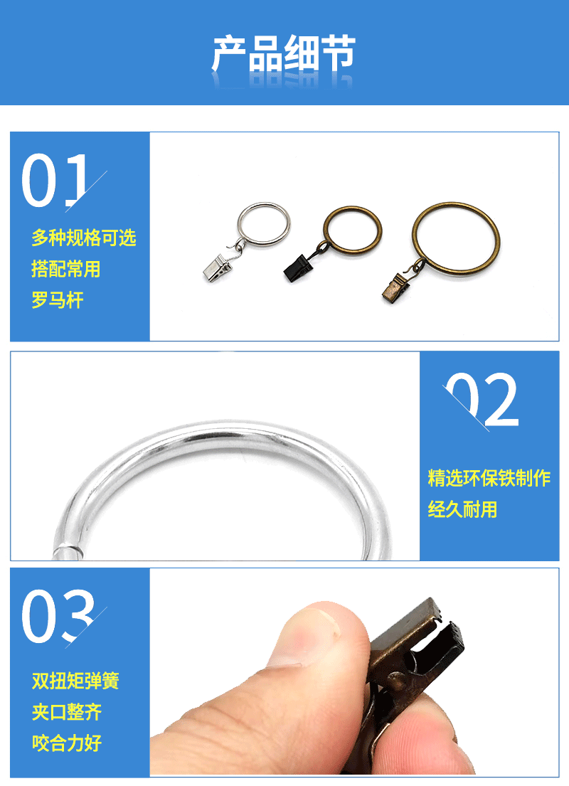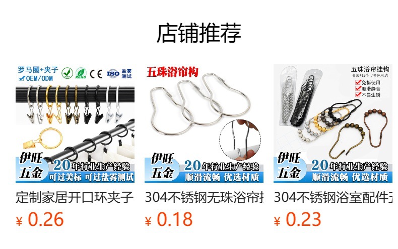 工厂直供金属窗饰配件不锈钢防锈窗帘圈夹子可拆卸顺滑浴帘挂环