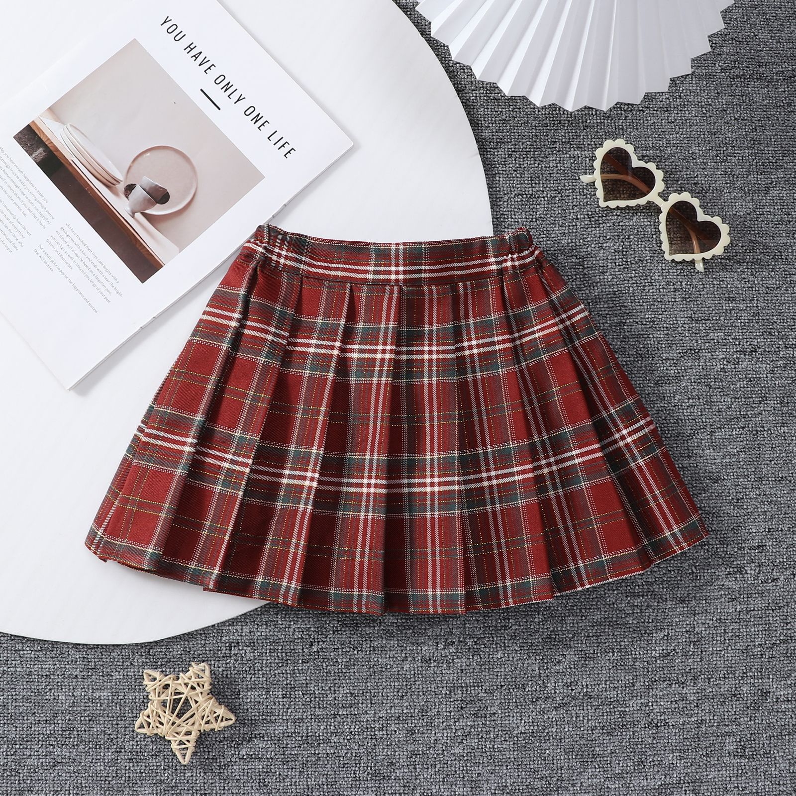 아동 의류 새로운 한국 스타일 중대형 어린이 및 소녀 격자 무늬 스커트 여름 아기 허리 치마 어린이 주름 짧은 치마 의상