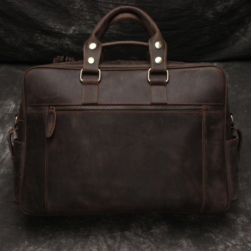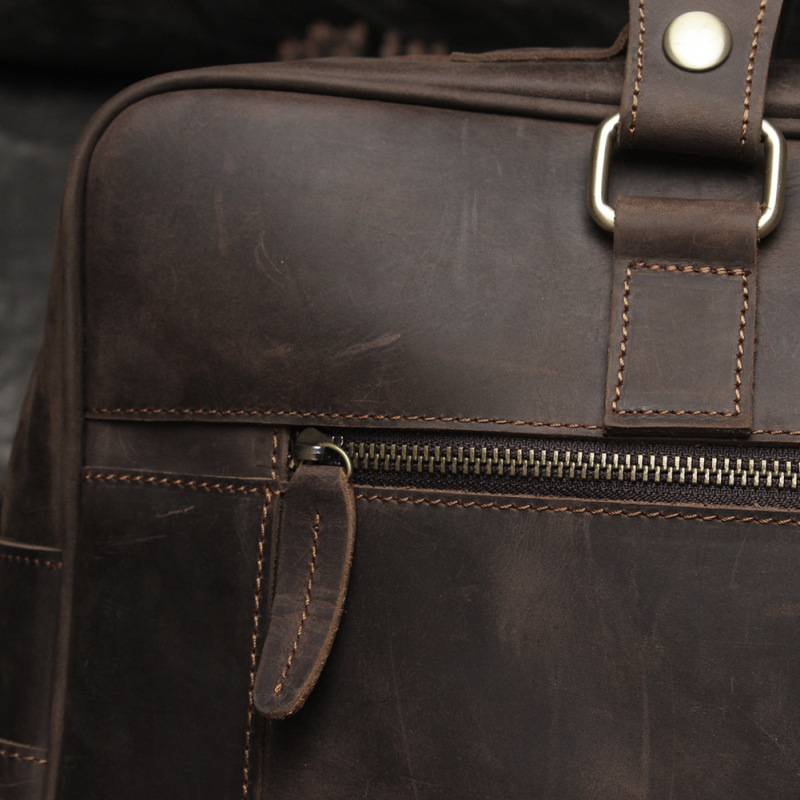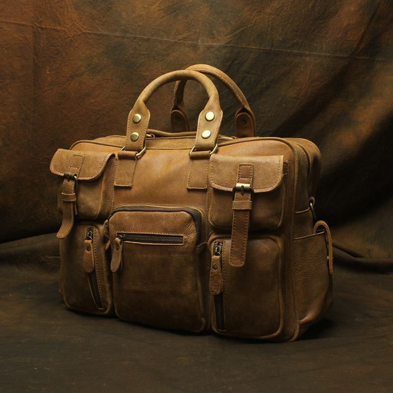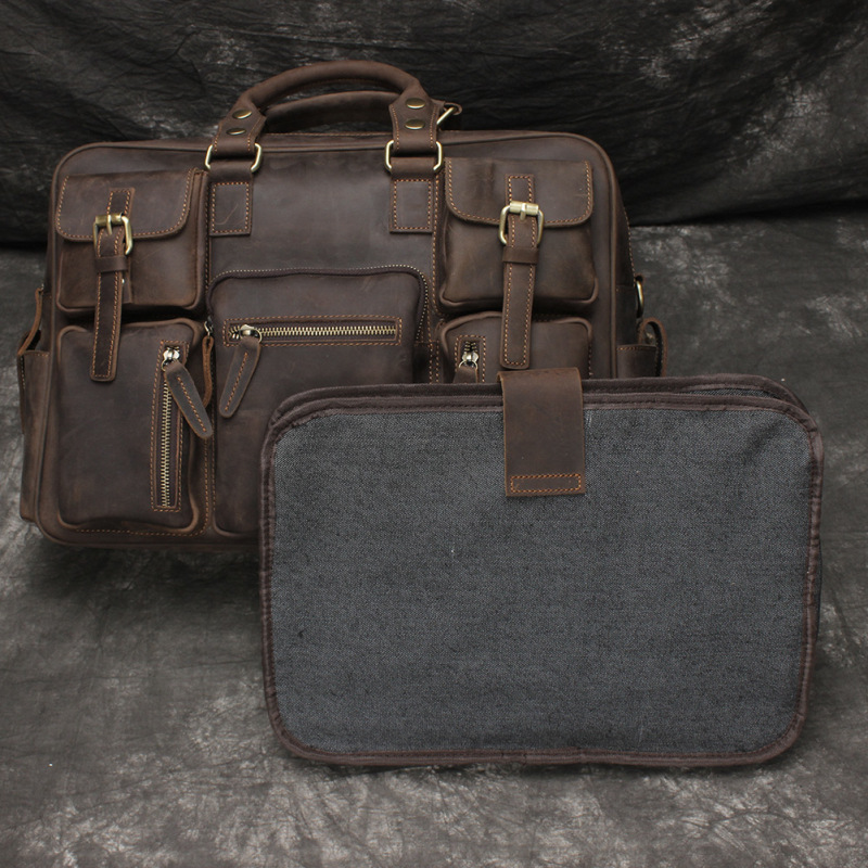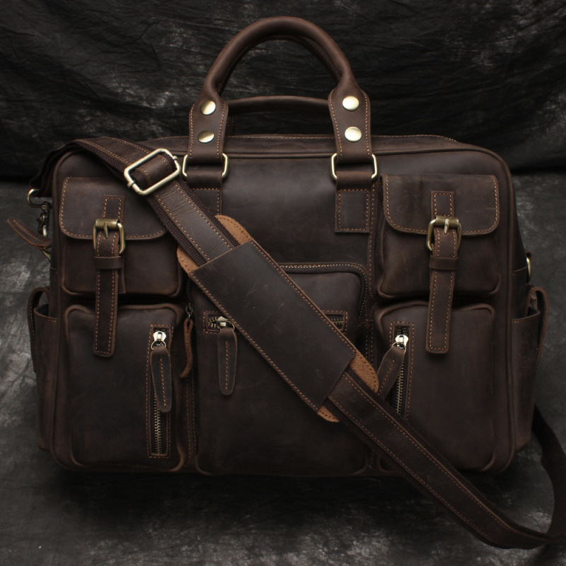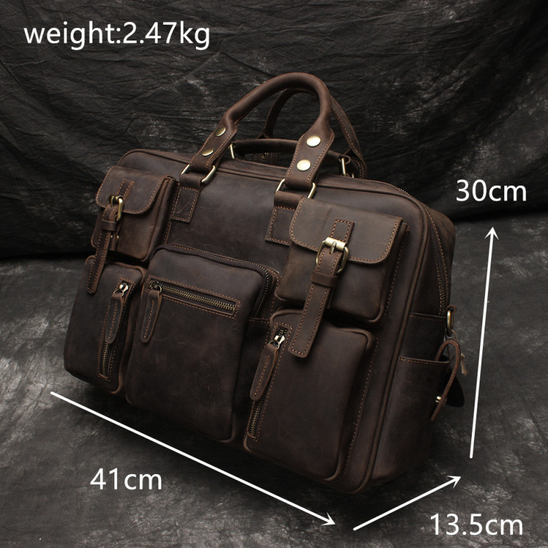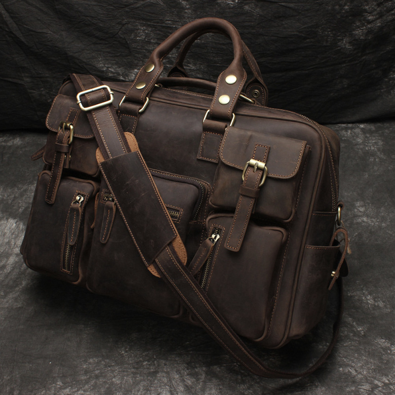 유럽과 미국 대외 무역 레트로 미친 말 가죽 남성용 가방 정품 가죽 15 인치 멀티 포켓 싱글 숄더 휴대용 크로스 바디 컴퓨터 메시지 가방스토어 가기