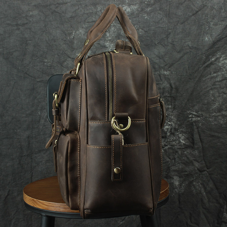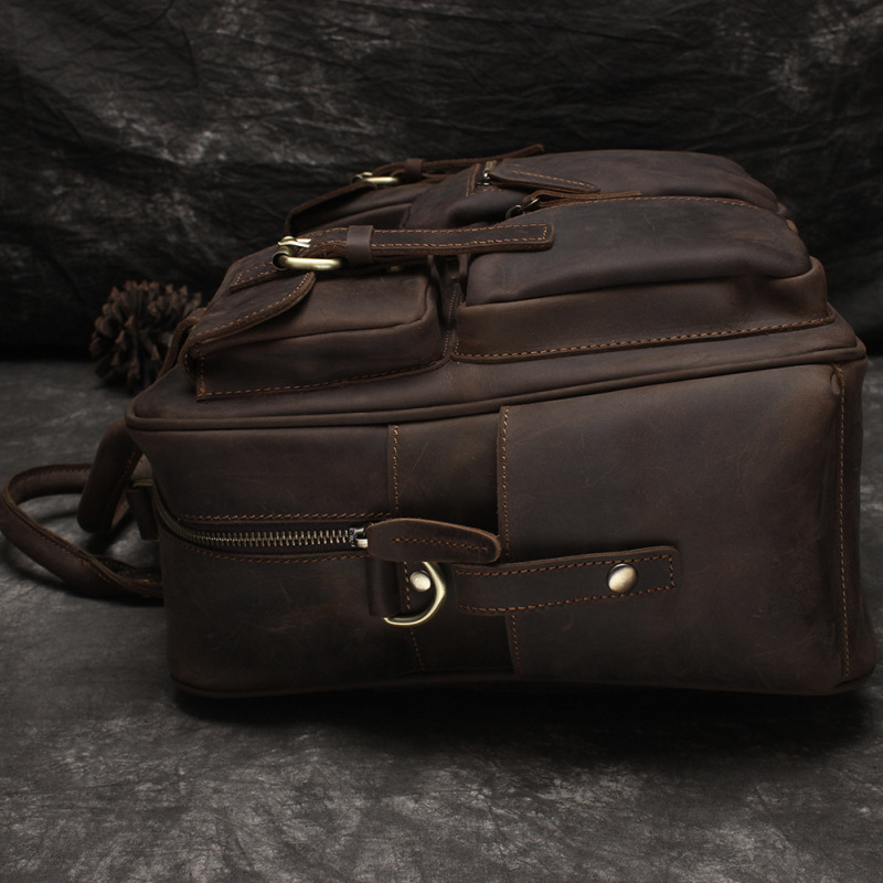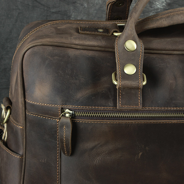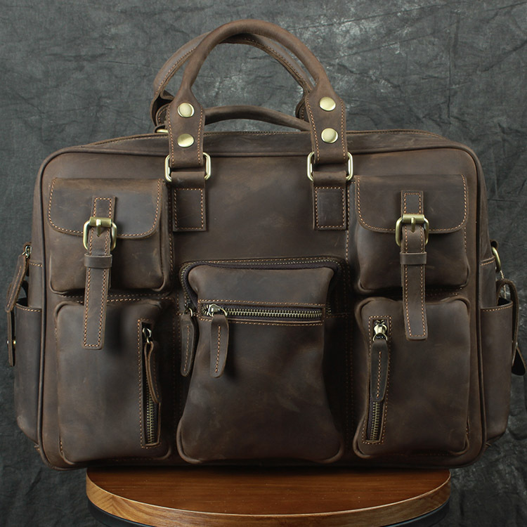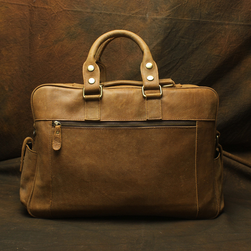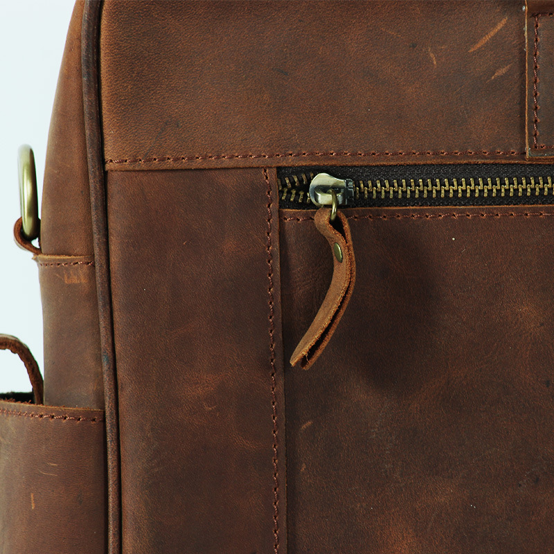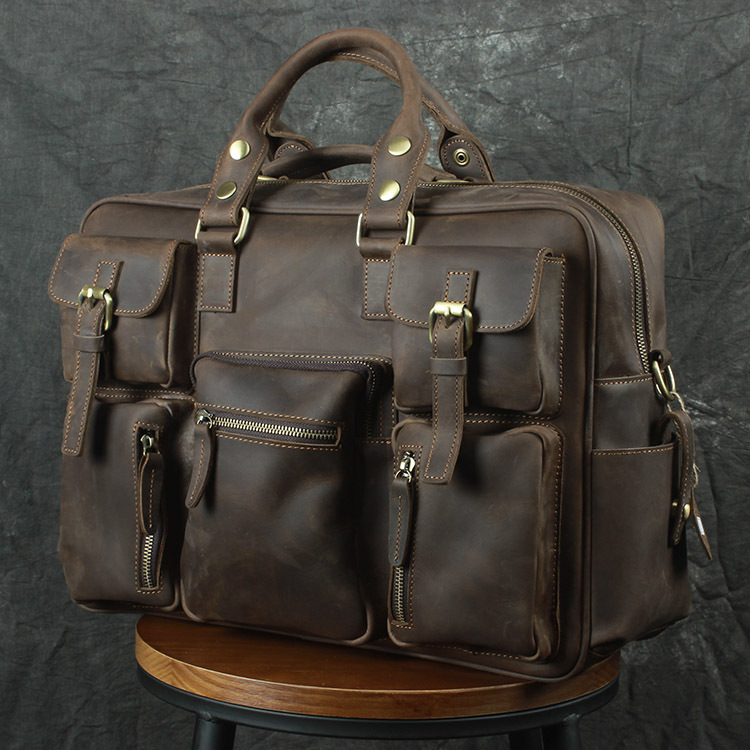 유럽과 미국 대외 무역 레트로 미친 말 가죽 남성용 가방 정품 가죽 15 인치 멀티 포켓 싱글 숄더 휴대용 크로스 바디 컴퓨터 메시지 가방스토어 가기