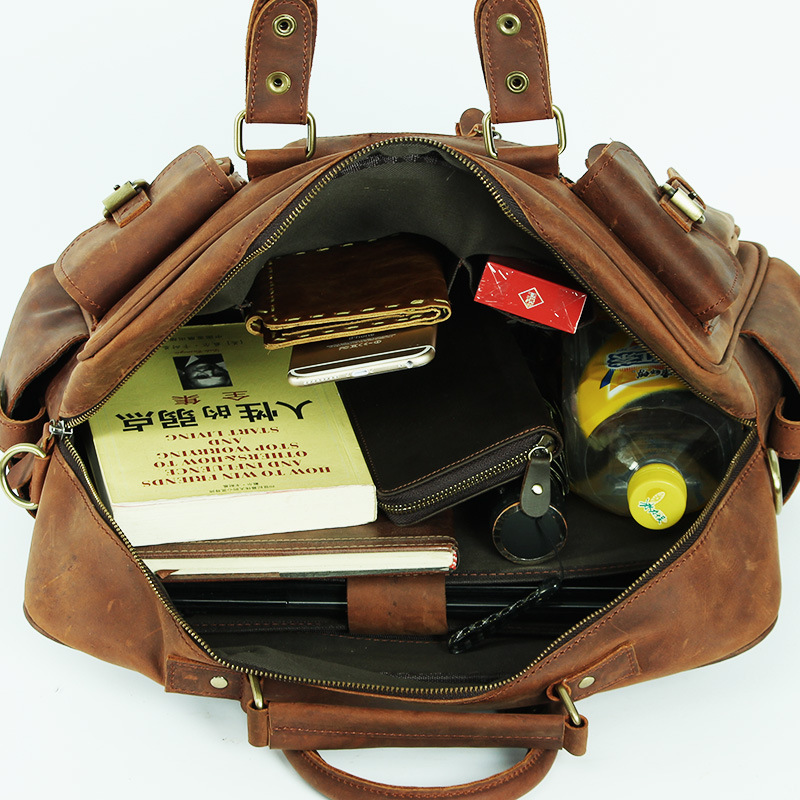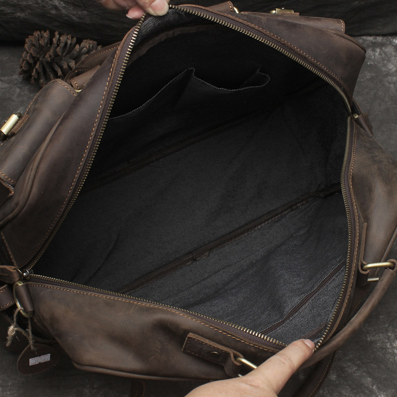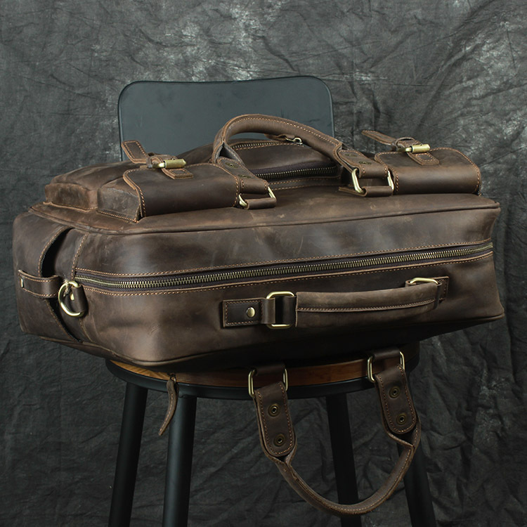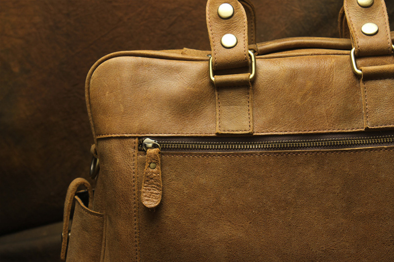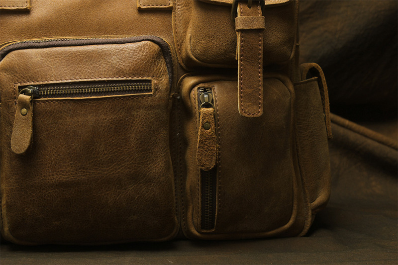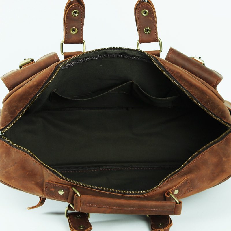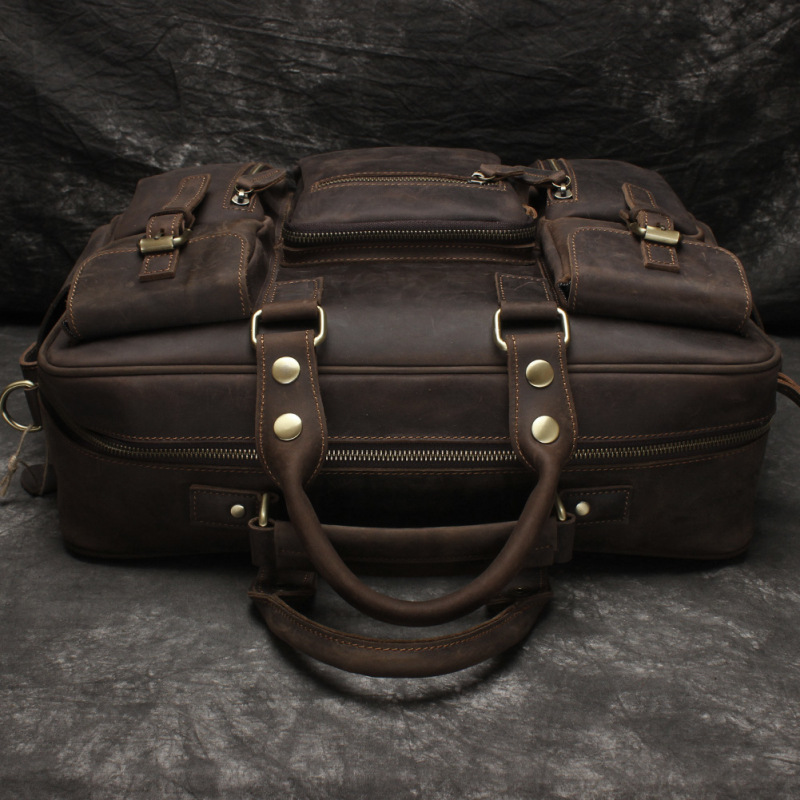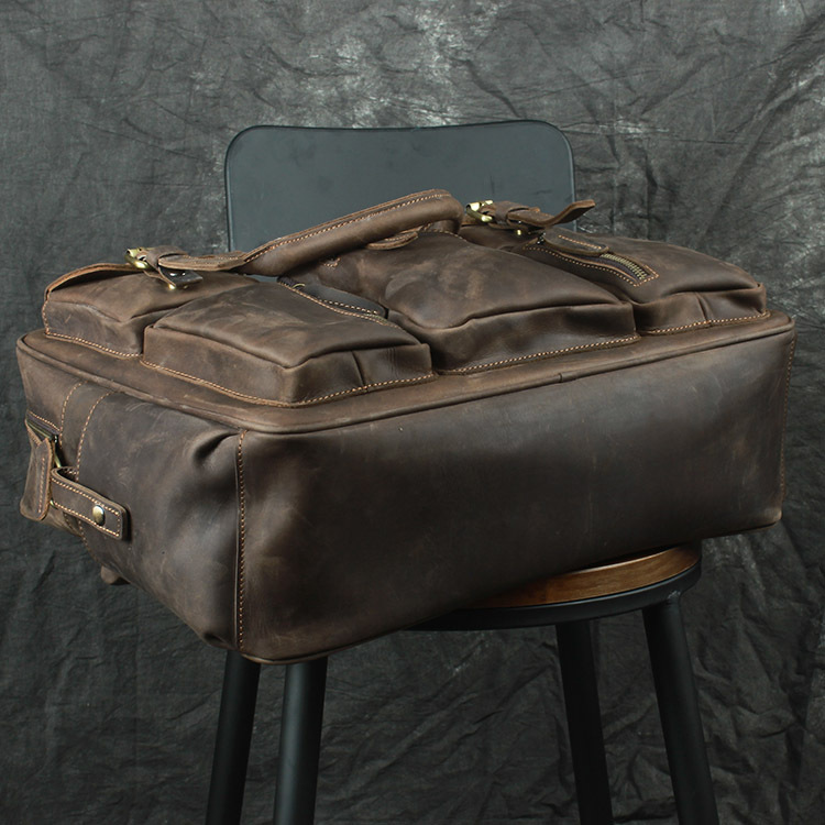 유럽과 미국 대외 무역 레트로 미친 말 가죽 남성용 가방 정품 가죽 15 인치 멀티 포켓 싱글 숄더 휴대용 크로스 바디 컴퓨터 메시지 가방스토어 가기