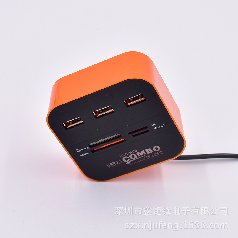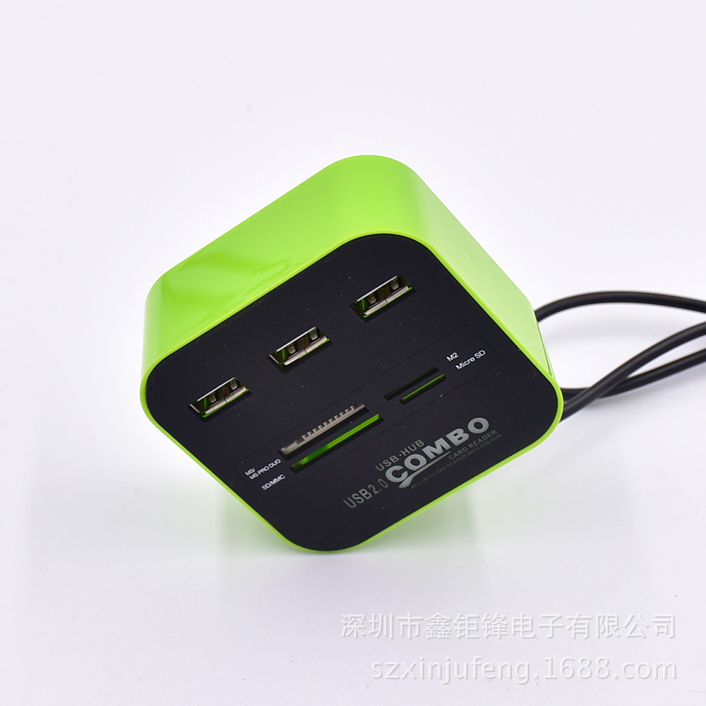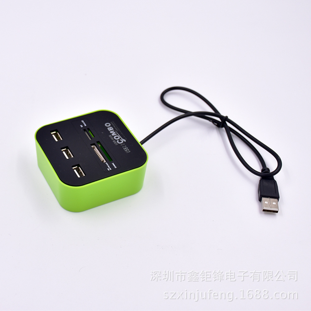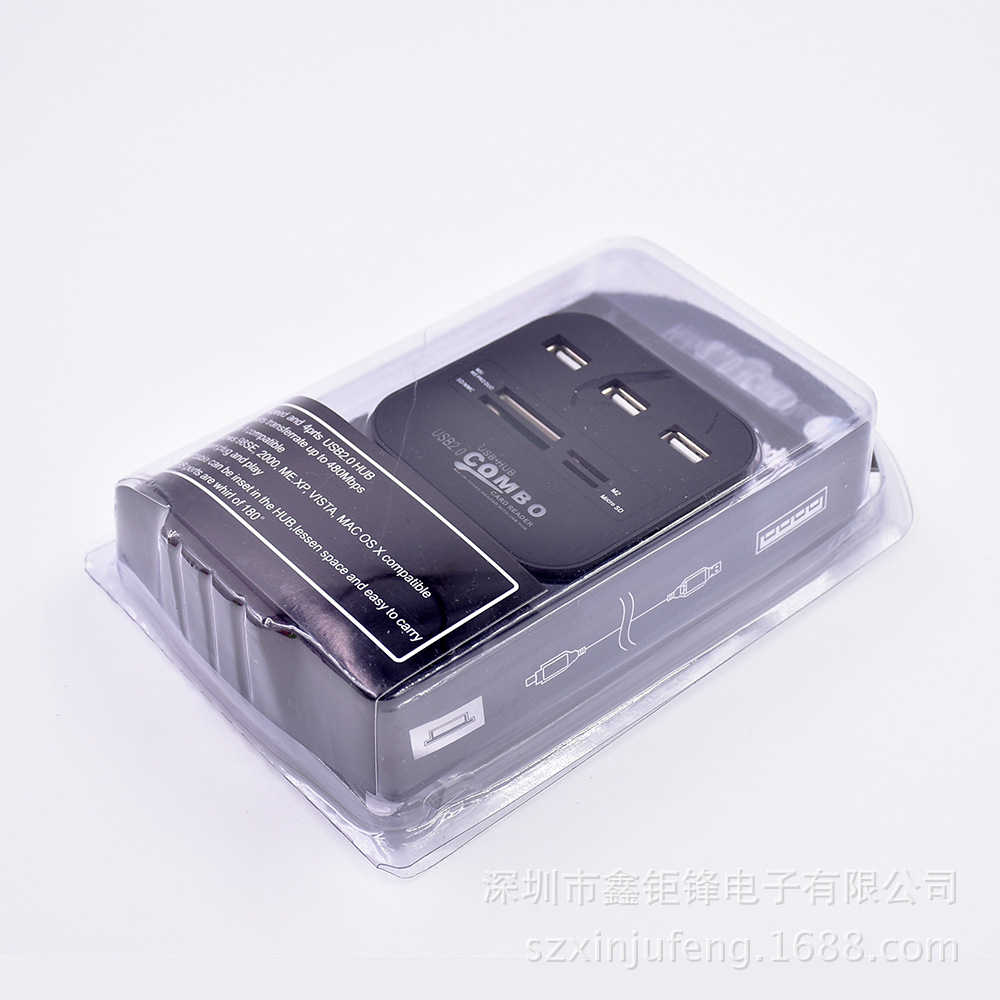 * 一个USB接口扩展为三个,小巧、实用、方便,扩展3个2.0USB接口,每个供电高达500MA 采用第二代USB HUB控制器* 直接与电脑相连, 无须外接电源,简单好用* 电脑自动识别安装, 无须驱动程序,即插即用,插拔* USB2.0接口,支持USB1.0/1.1,传输速度1.5/12/480MBPS* 内置电流过载短路保护装置*非常便利!USB Hub 和 Card reader 一体化功能 *读卡器加集线器,让你有多方便就有多方便。以上图片的大小内存卡都可以直接读的,包括诺基亚手机的内存TF小卡