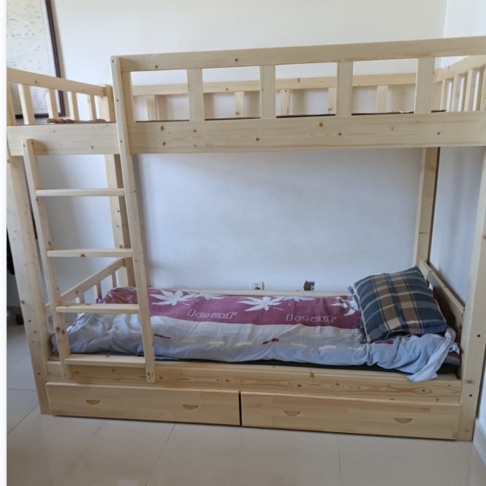 现市场上的实木上下床多采用松木或杉木,松木居多,原木不上色,更加环保,安装也相对较多简单。
