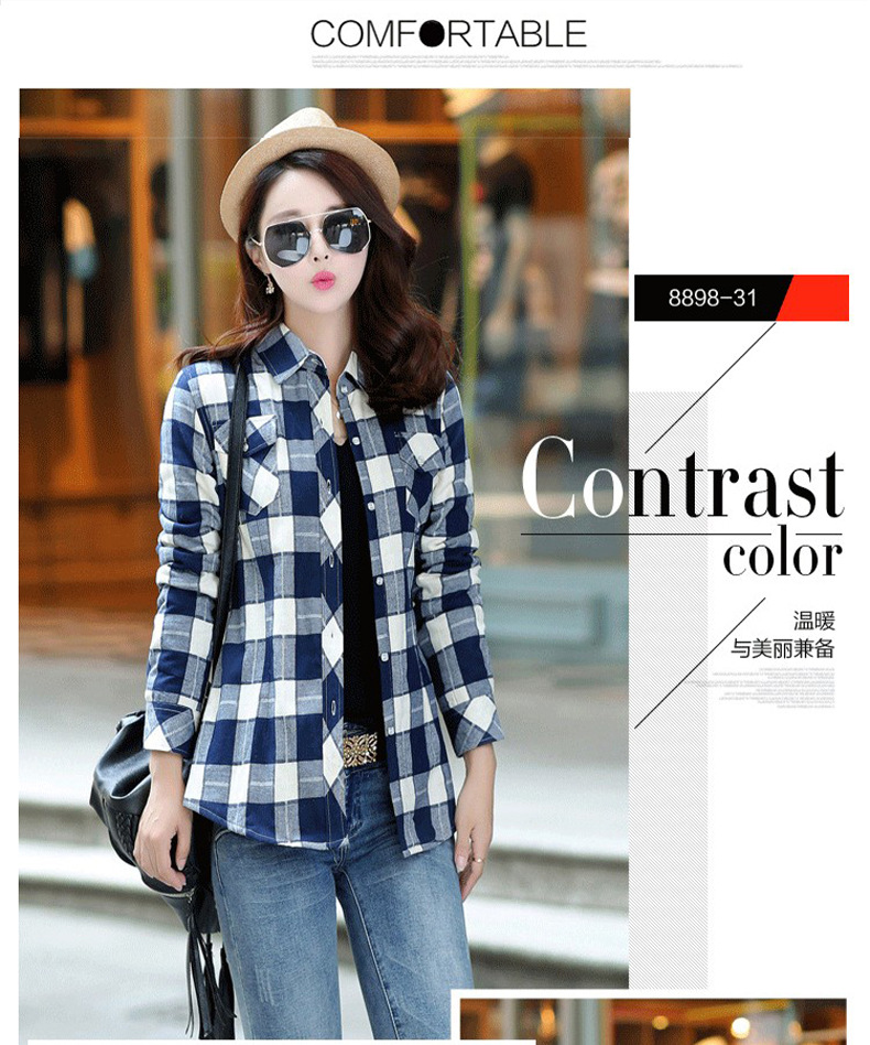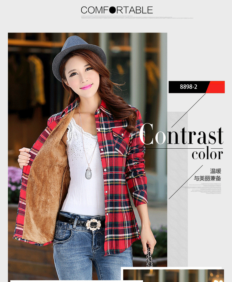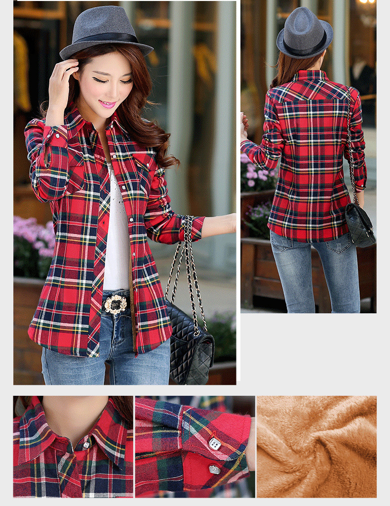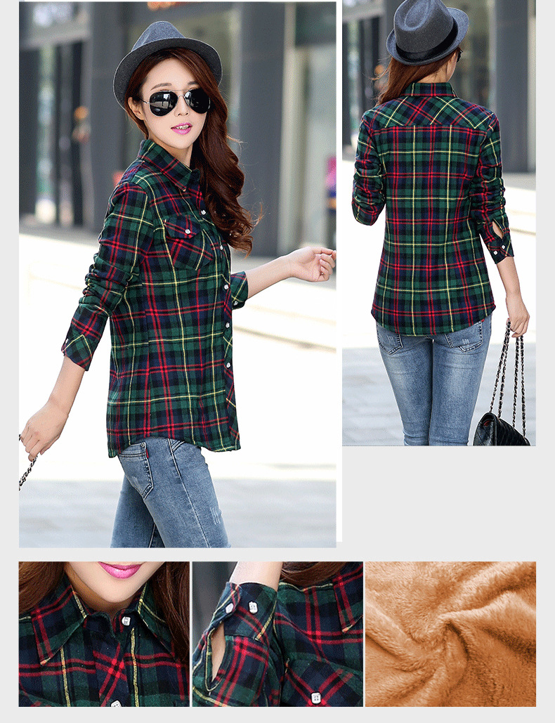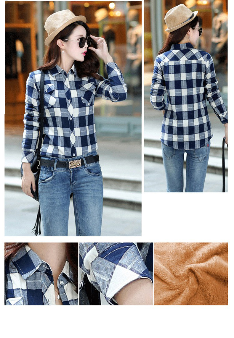 새로운 2025 따뜻한 여성 격자 무늬 셔츠 여성 벨벳 두꺼운 격자 무늬 셔츠 여성을위한 영국 슬림 긴팔 셔츠스토어 가기