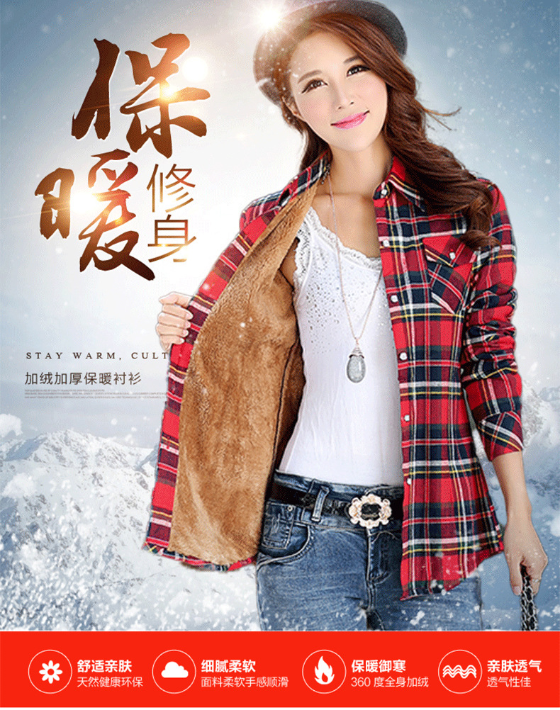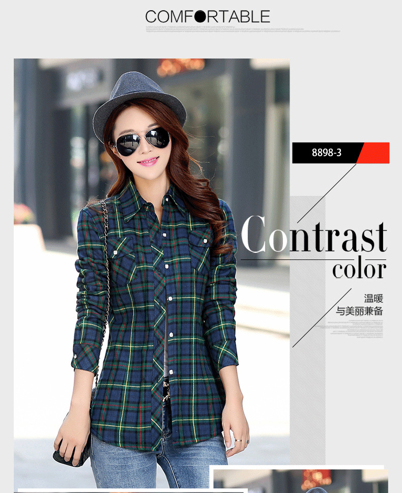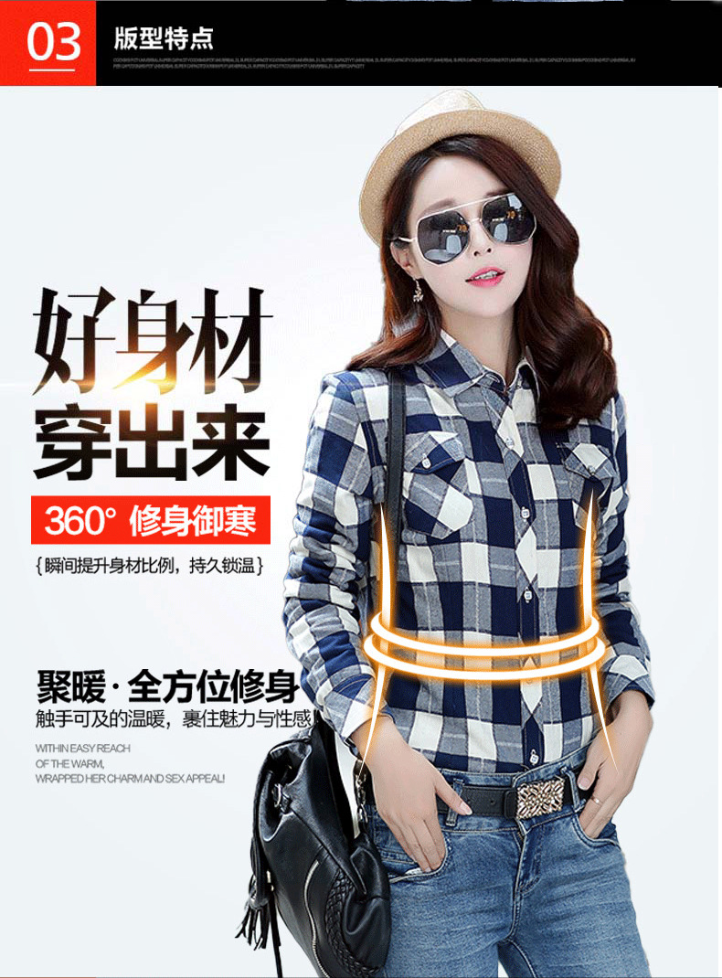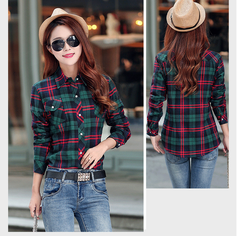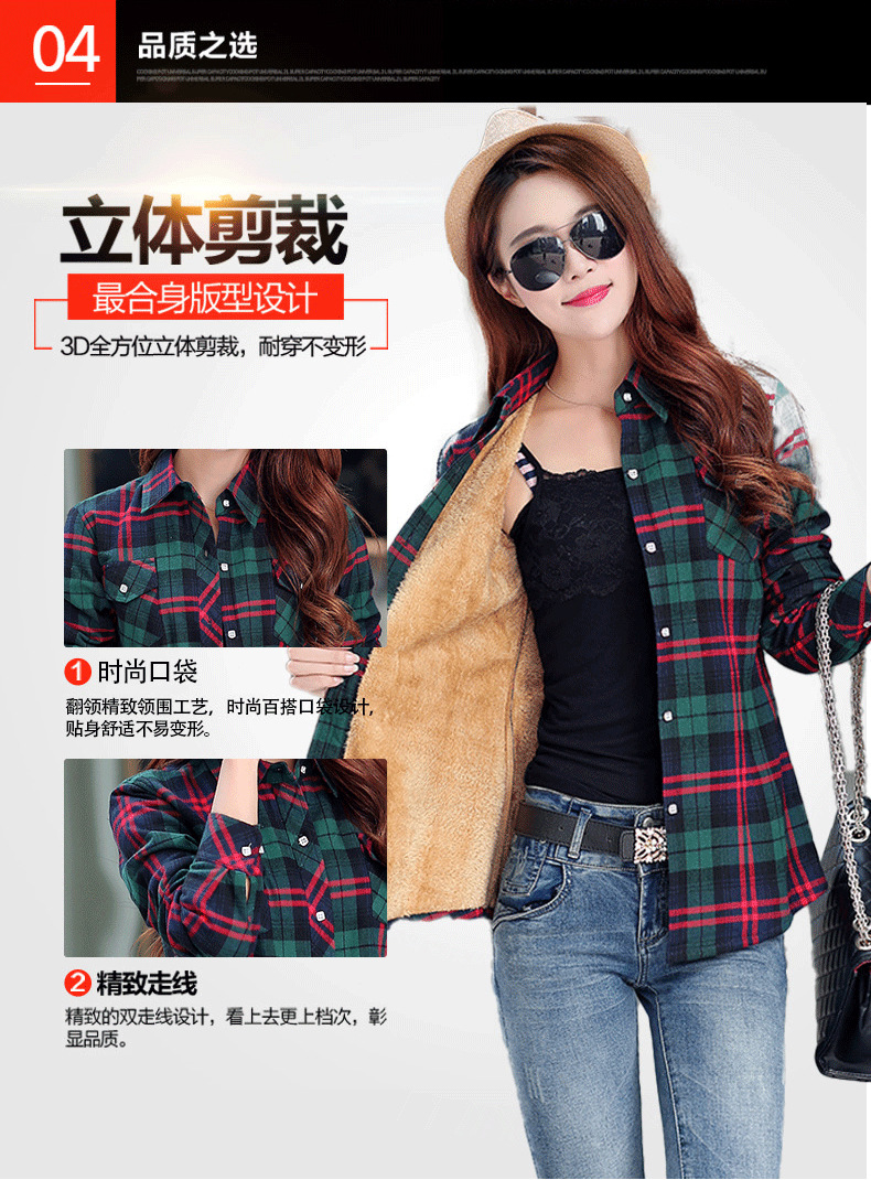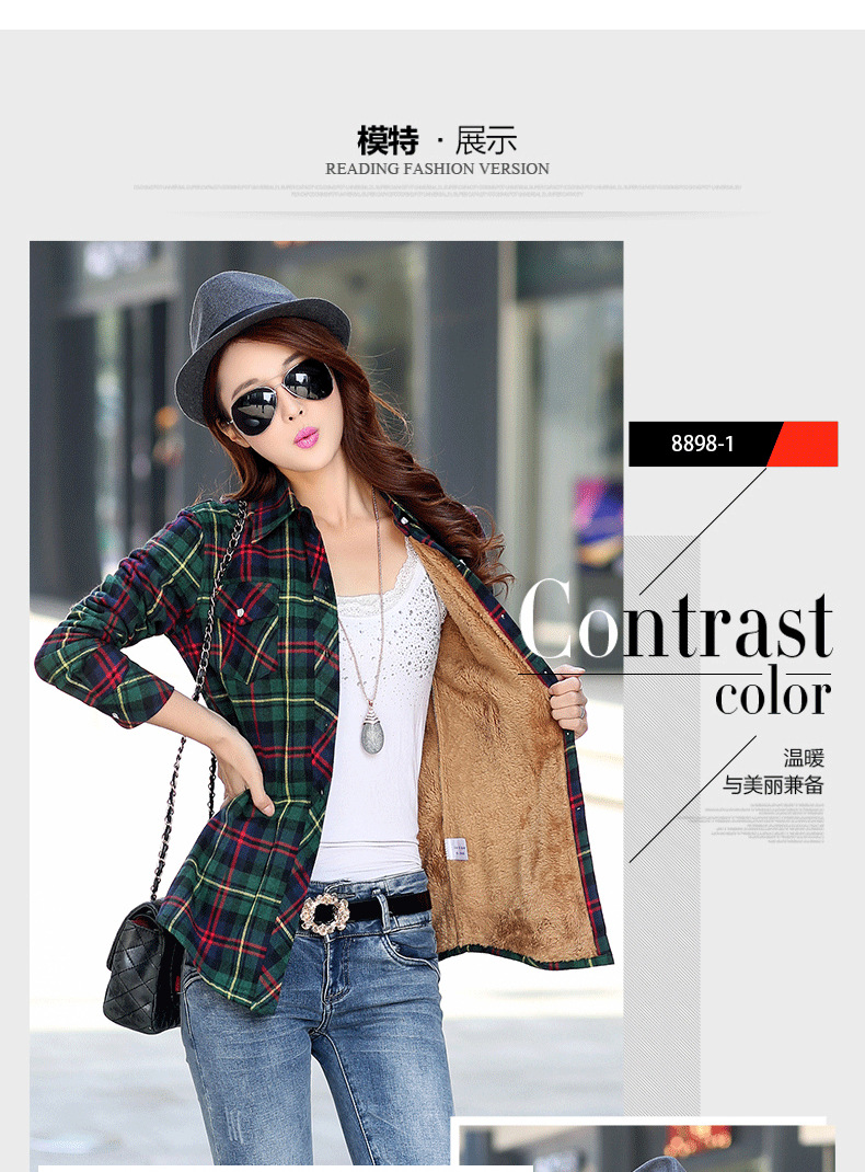 새로운 2025 따뜻한 여성 격자 무늬 셔츠 여성 벨벳 두꺼운 격자 무늬 셔츠 여성을위한 영국 슬림 긴팔 셔츠스토어 가기