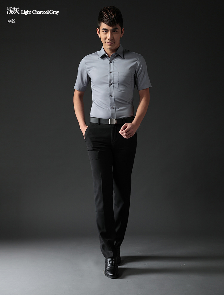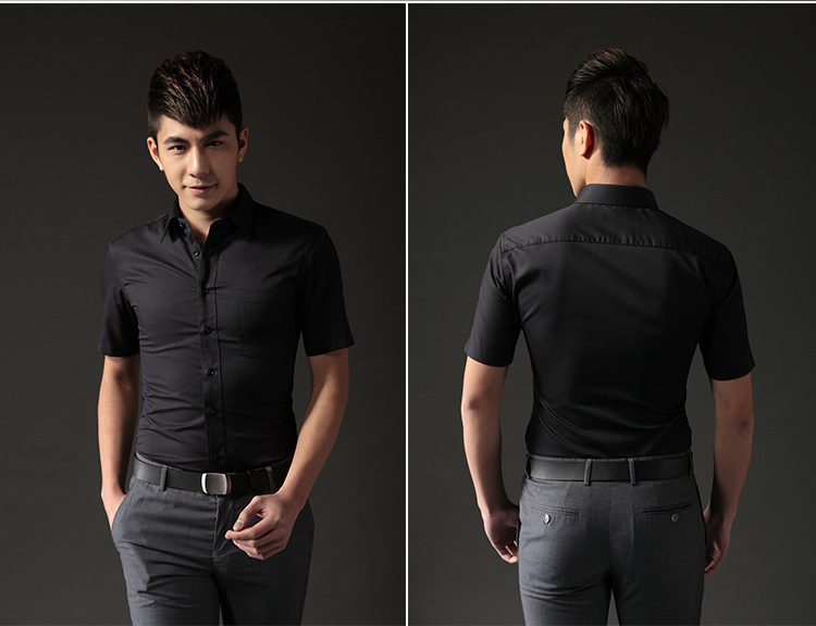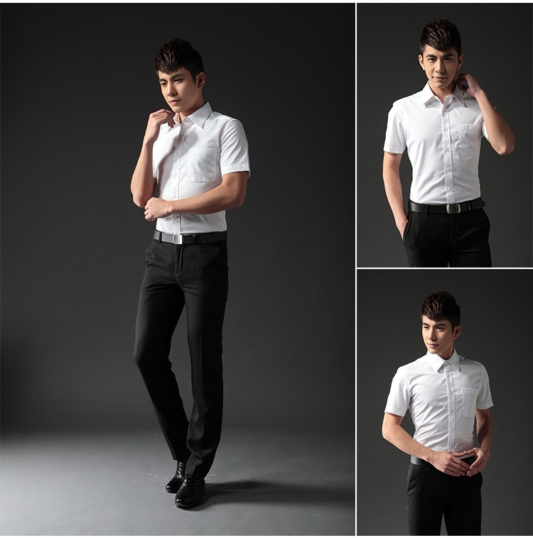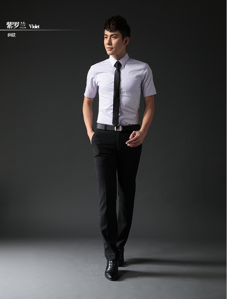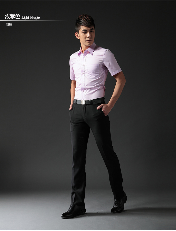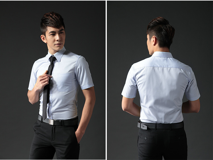 맞춤형 로고 남성용 반팔 슬림핏 다림질 필요 없는 면 셔츠 남성복 비즈니스 캐주얼 작업복 도매 셔츠스토어 가기
