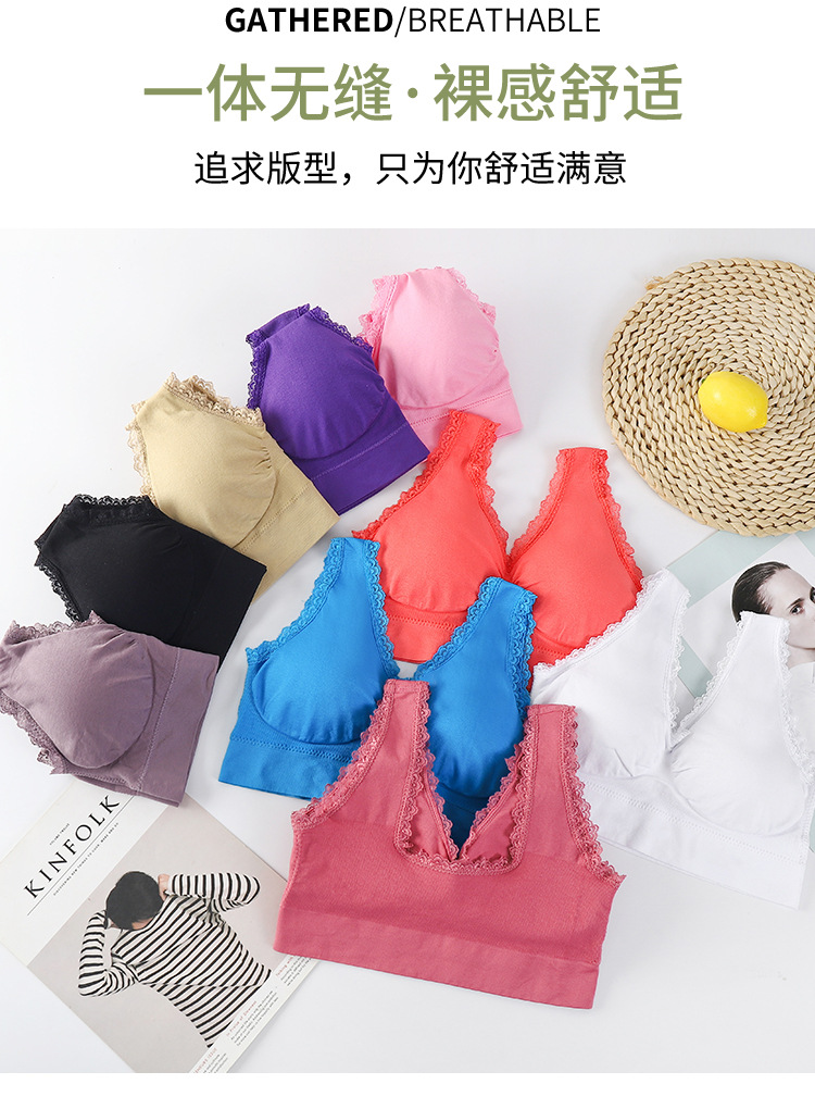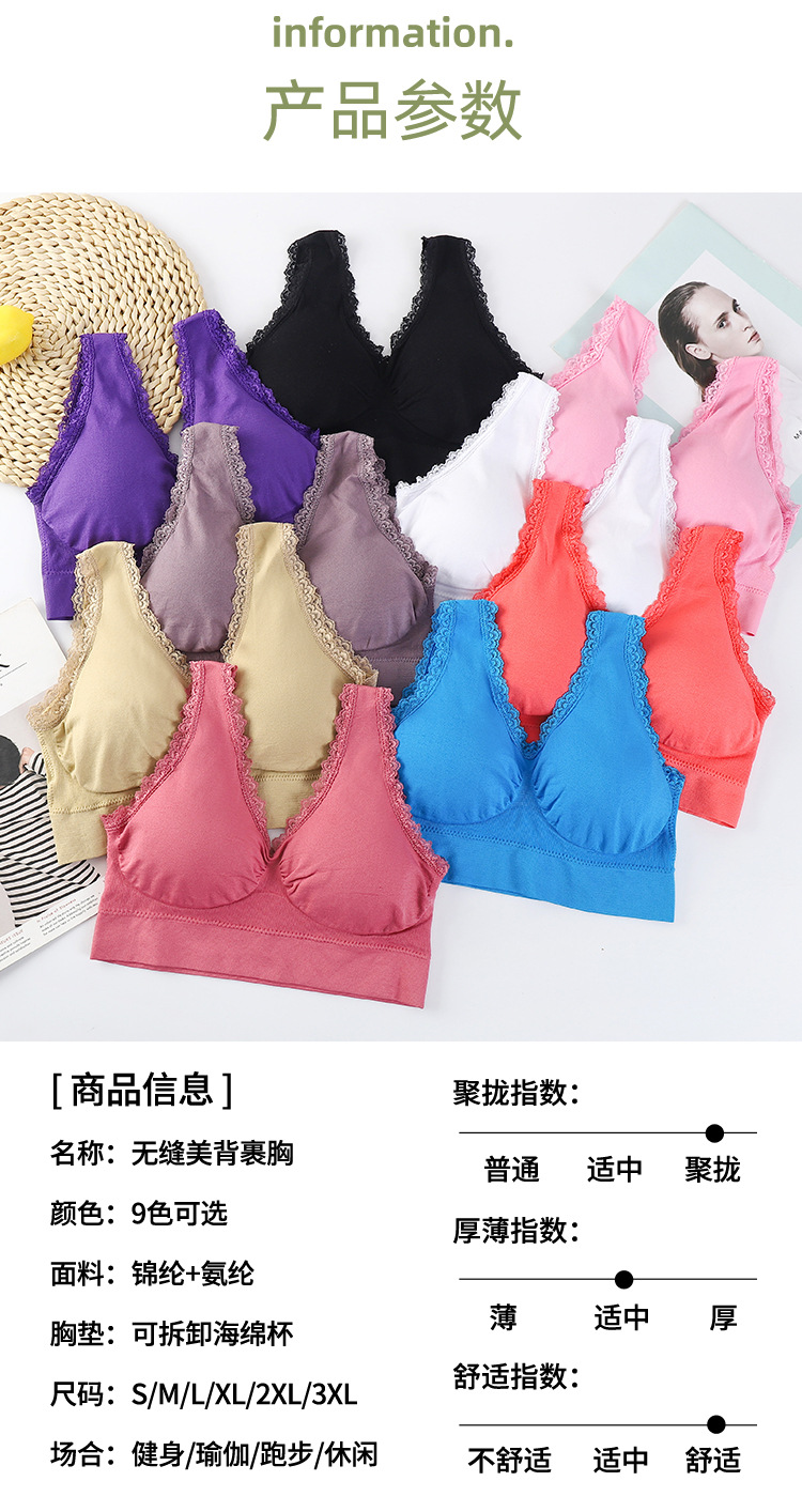 와이어 프리 레이스 이음매없는 스포츠 브라 가슴 패드가있는 얇은 여성 속옷 제로 구속 브라 대형 사이즈스토어 가기