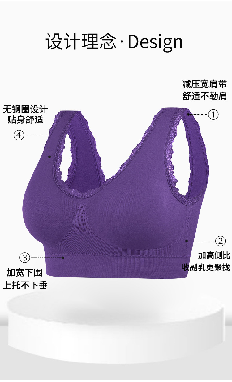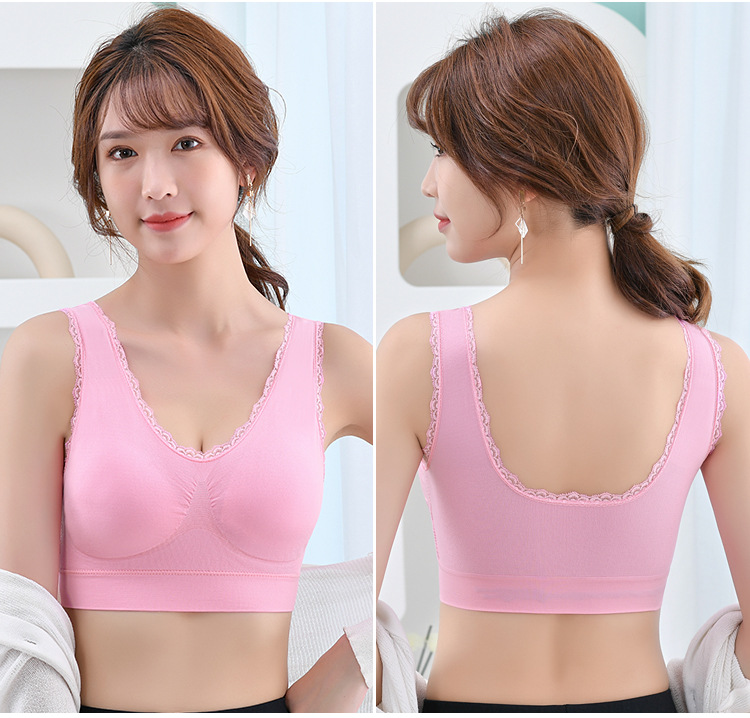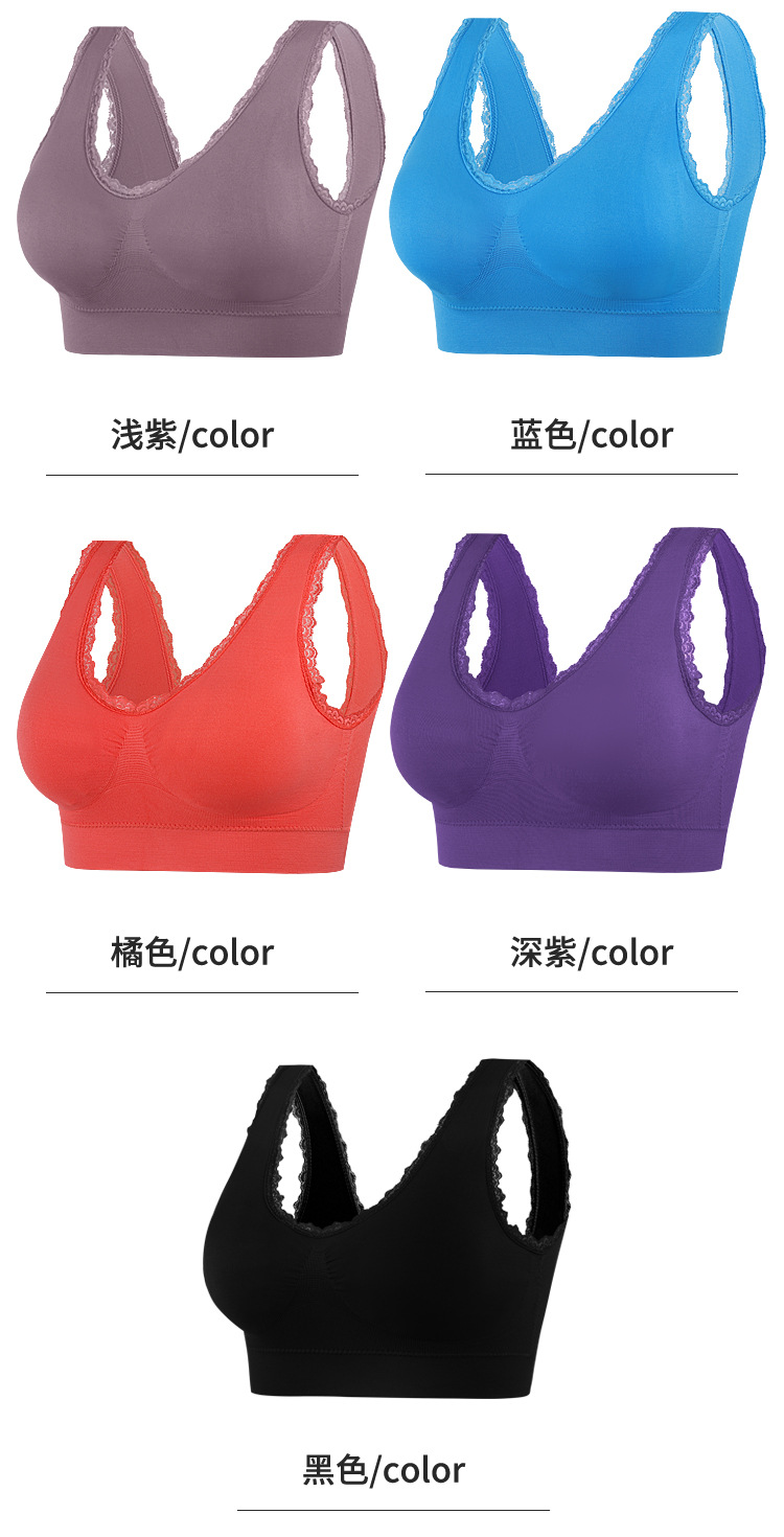 와이어 프리 레이스 이음매없는 스포츠 브라 가슴 패드가있는 얇은 여성 속옷 제로 구속 브라 대형 사이즈