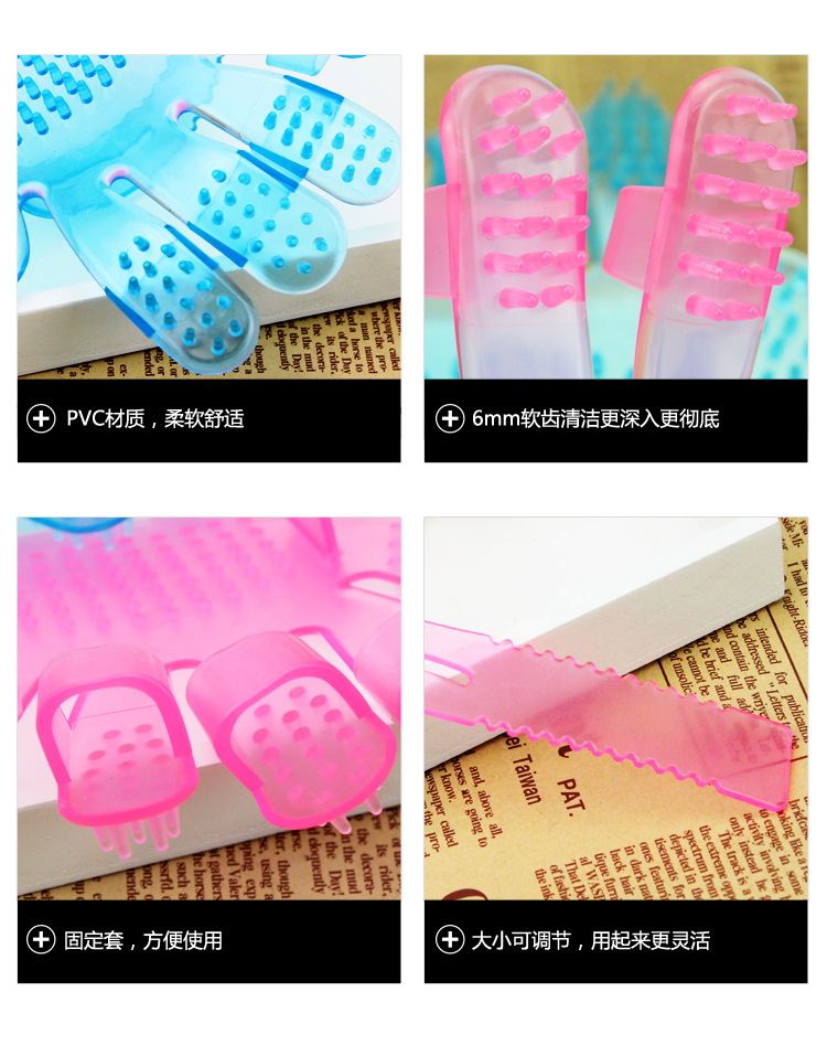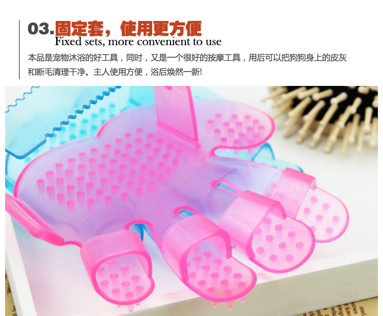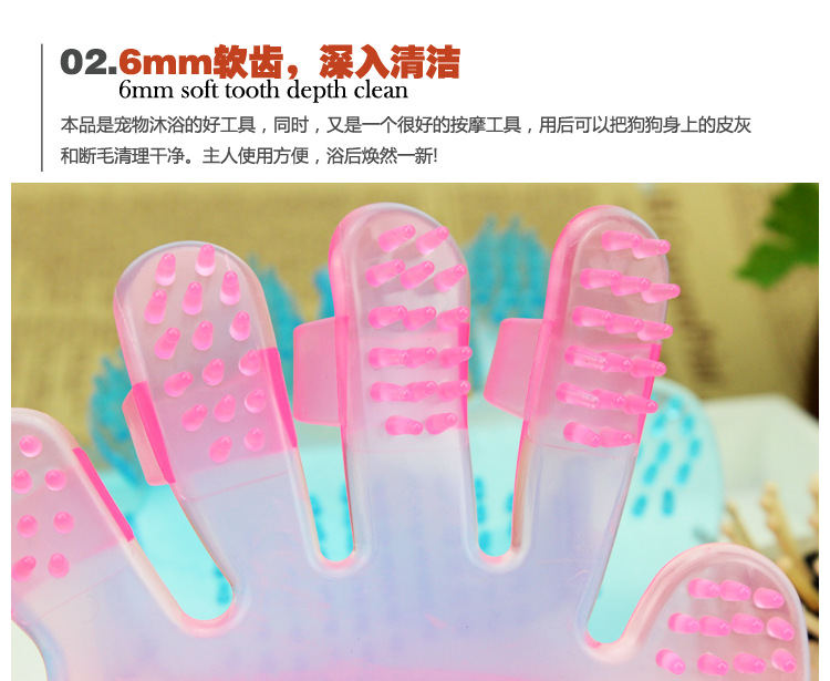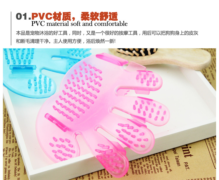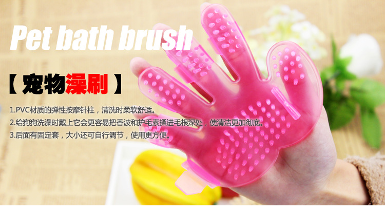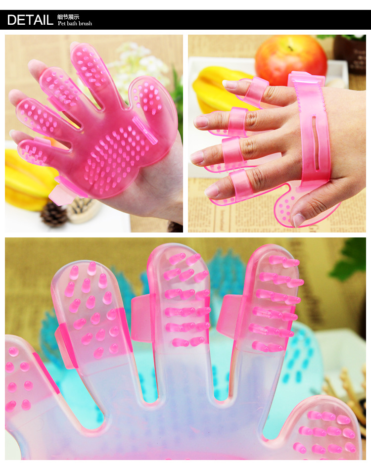 도매 배송 두꺼운 애완동물 목욕 브러시 강아지 크리스탈 플라스틱 소재 다섯 손가락 브러시 고양이 마사지 빗 청소용