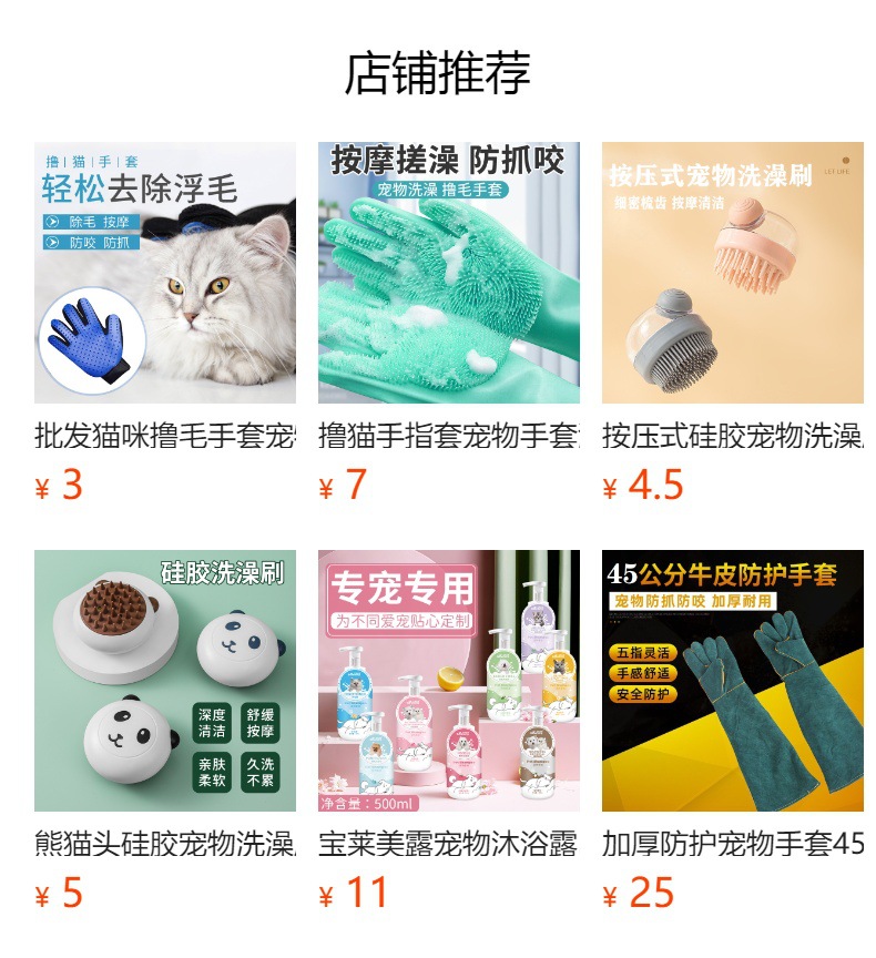 도매 배송 두꺼운 애완동물 목욕 브러시 강아지 크리스탈 플라스틱 소재 다섯 손가락 브러시 고양이 마사지 빗 청소용스토어 가기