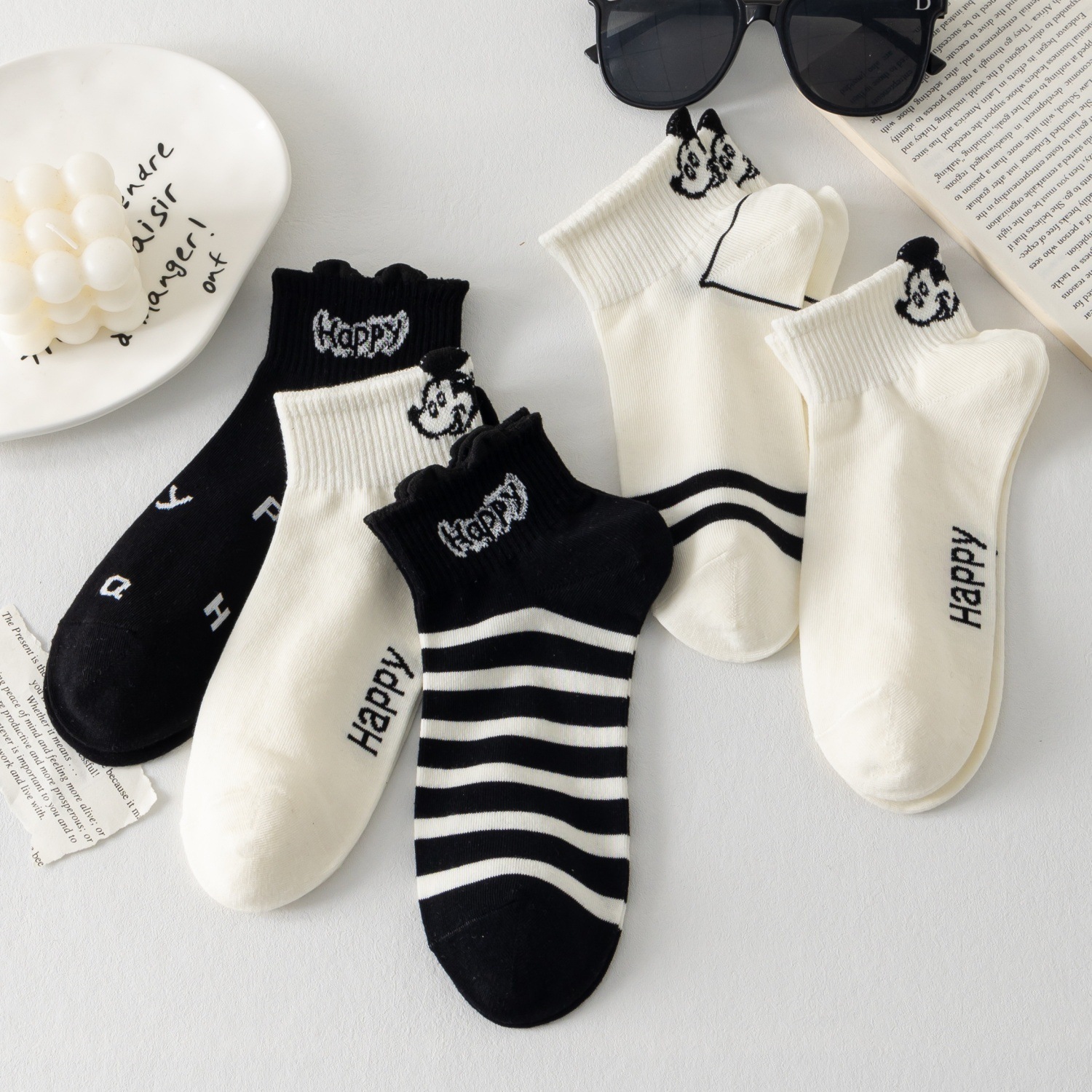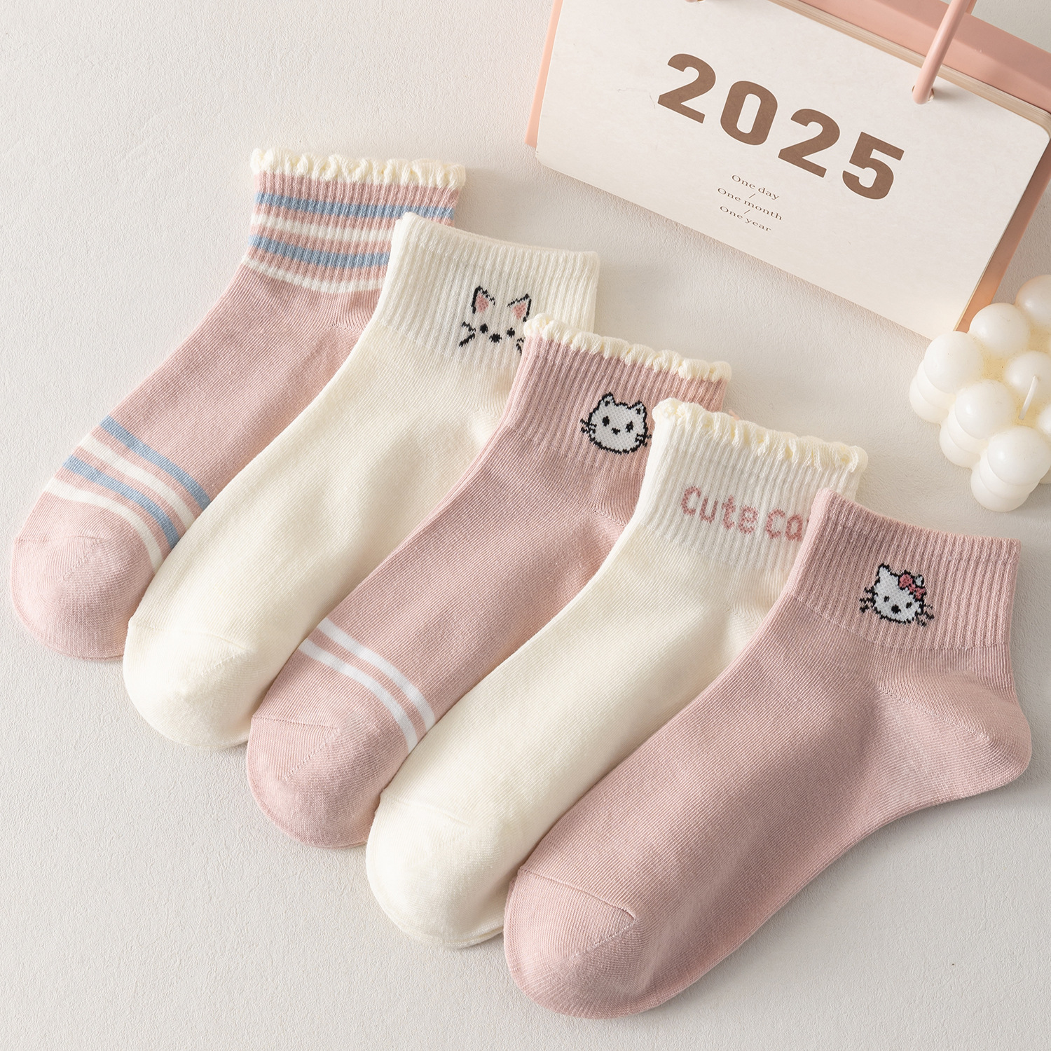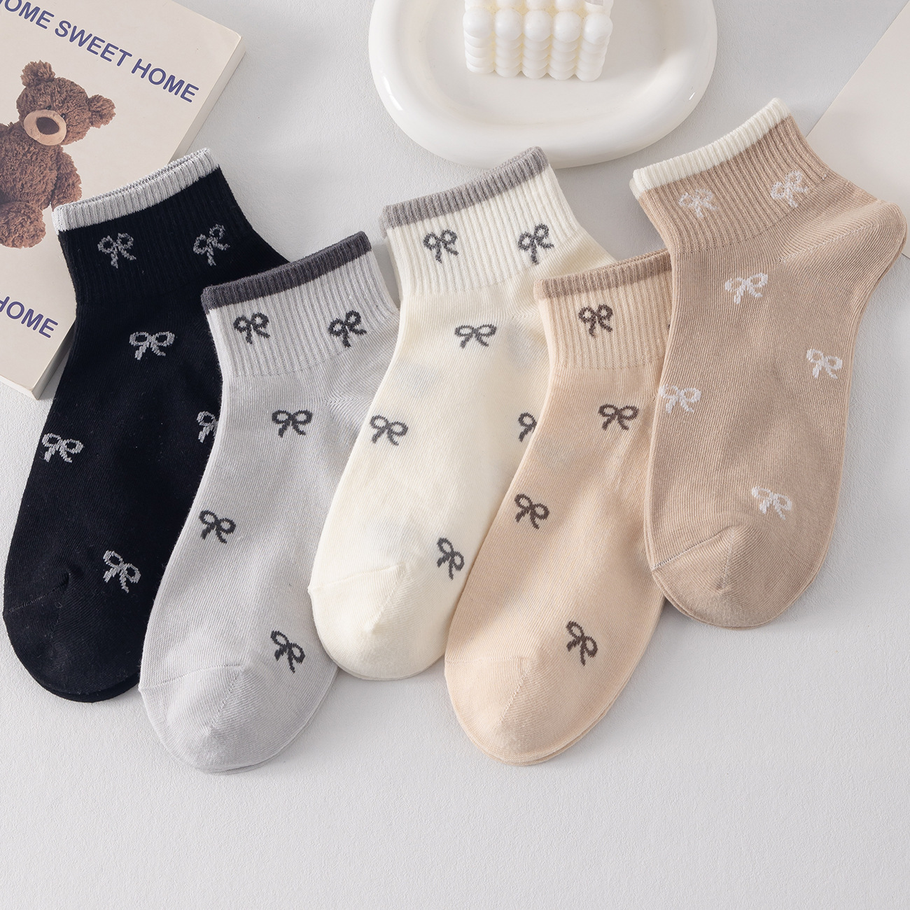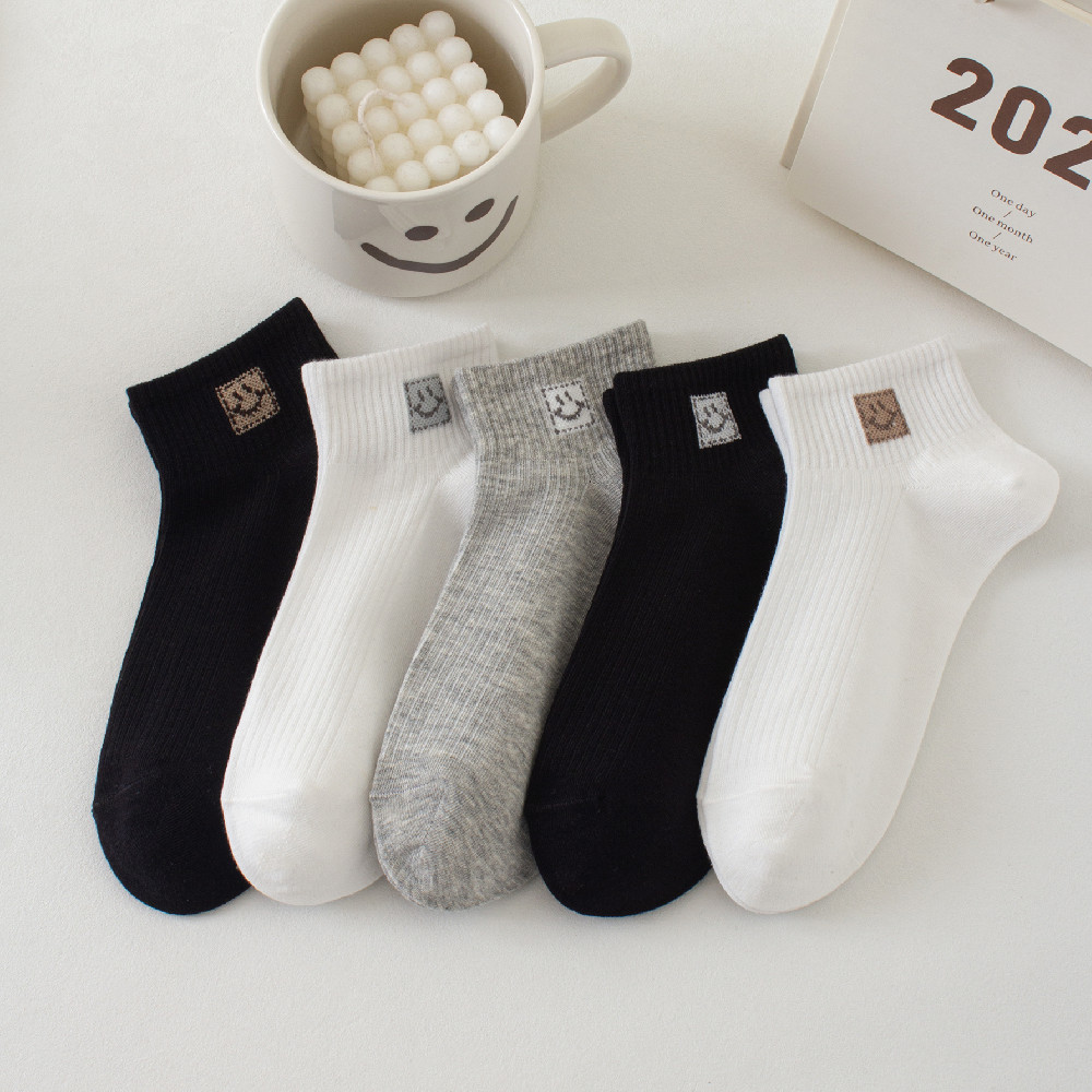 봄과 여름 어린이를위한 짧은 양말 얇은 흰색 사랑 통기성 땀 흡수 스포츠 귀여운 학생면 양말 작은 흰색 신발과 얕은 입