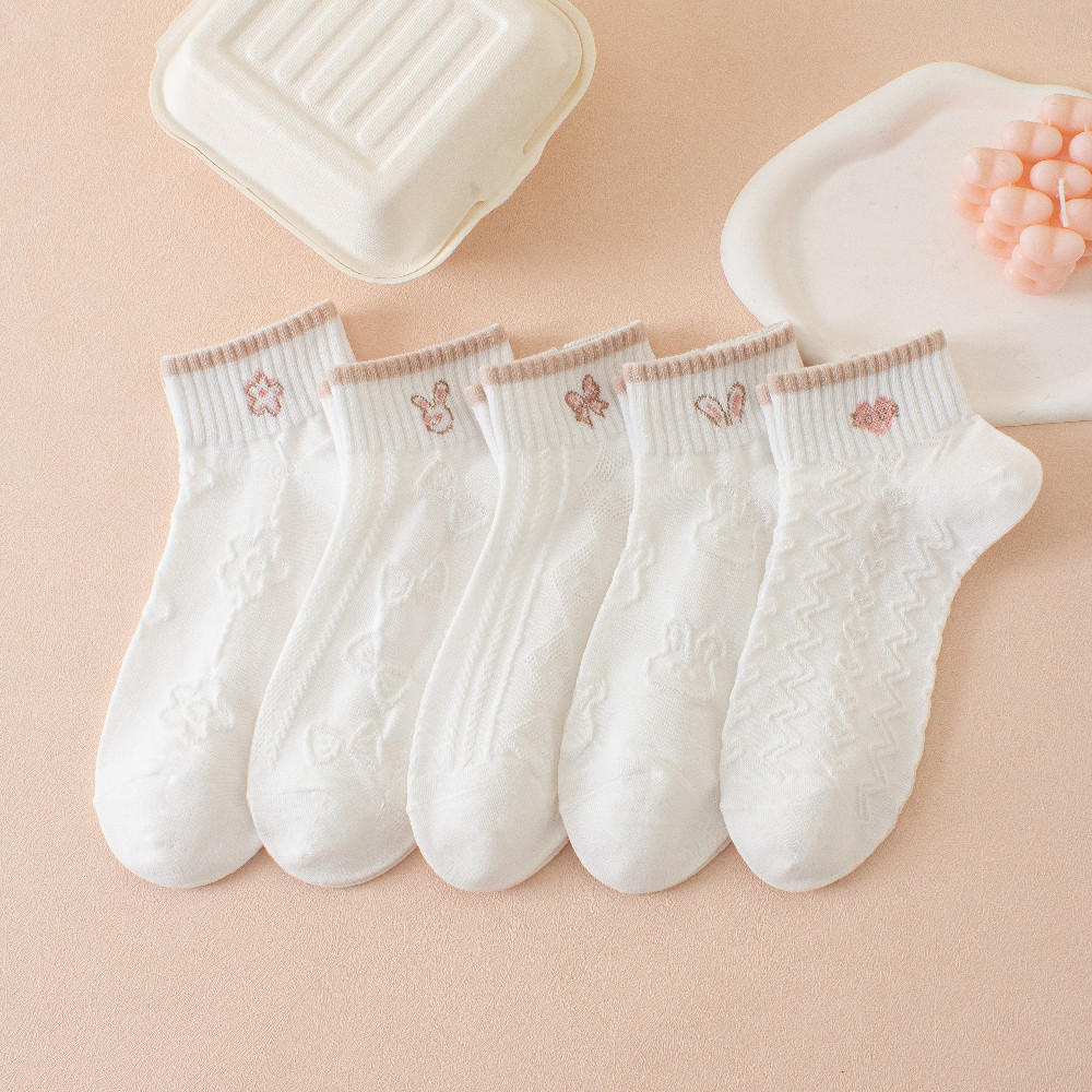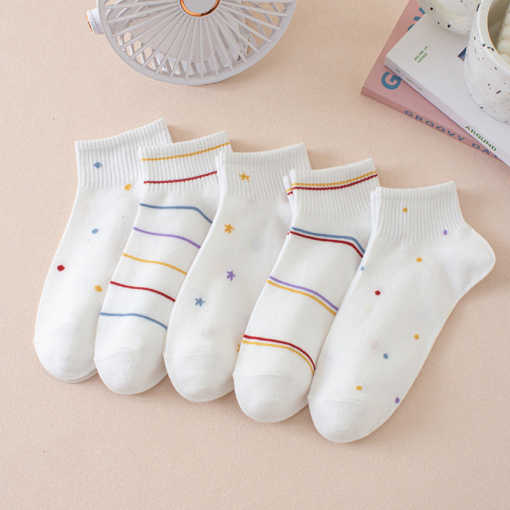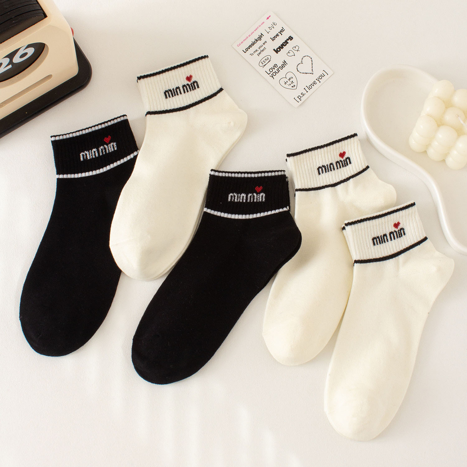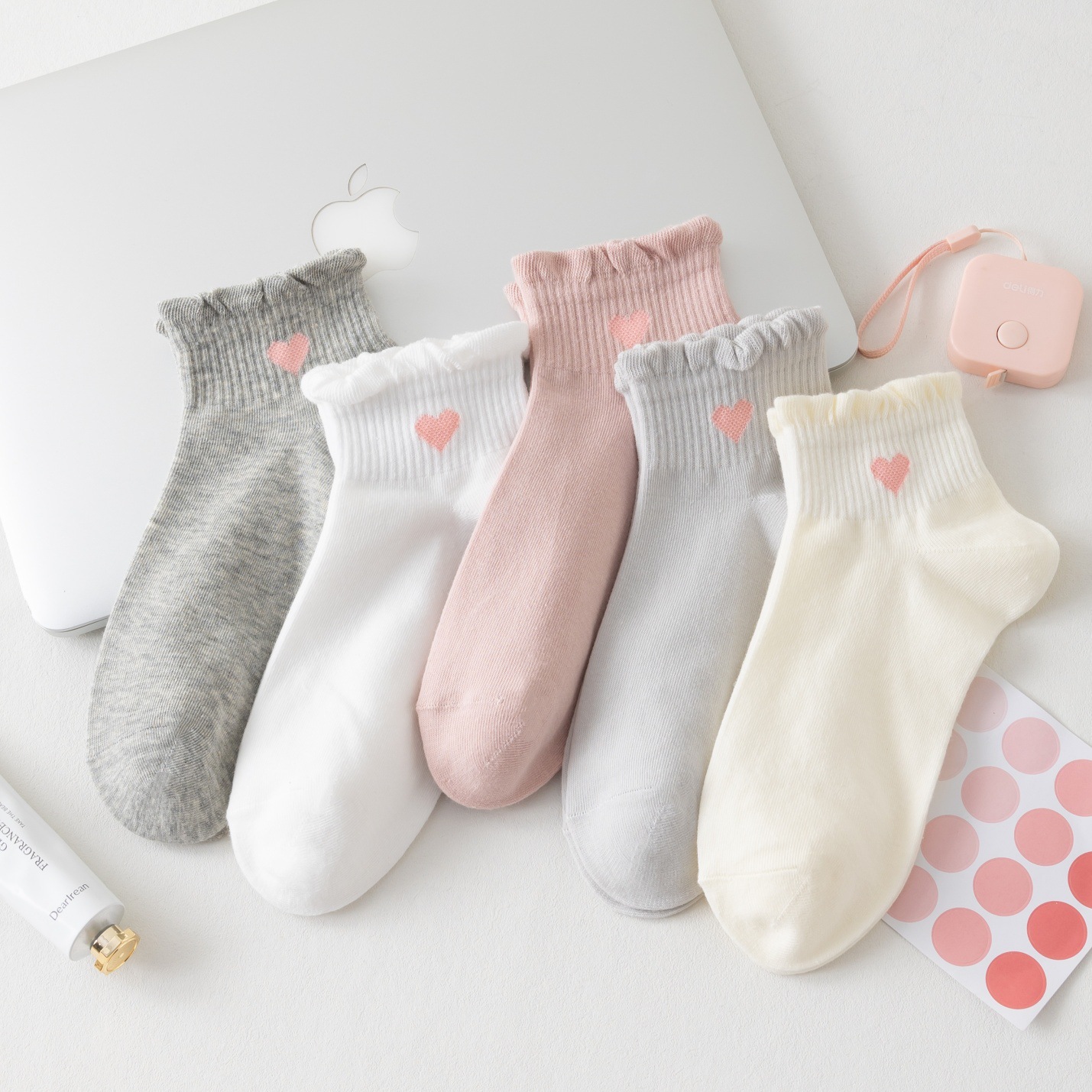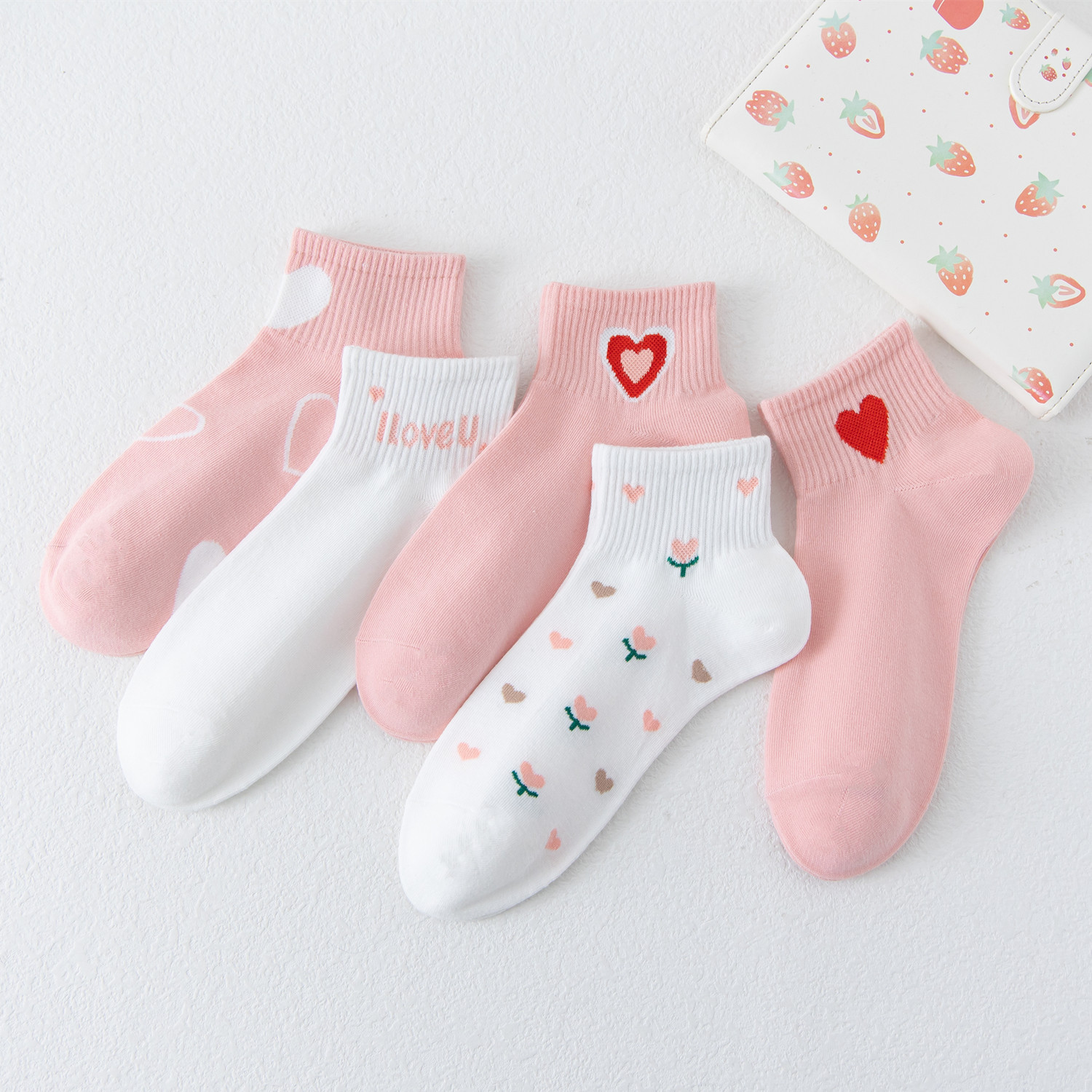 봄과 여름 어린이를위한 짧은 양말 얇은 흰색 사랑 통기성 땀 흡수 스포츠 귀여운 학생면 양말 작은 흰색 신발과 얕은 입스토어 가기