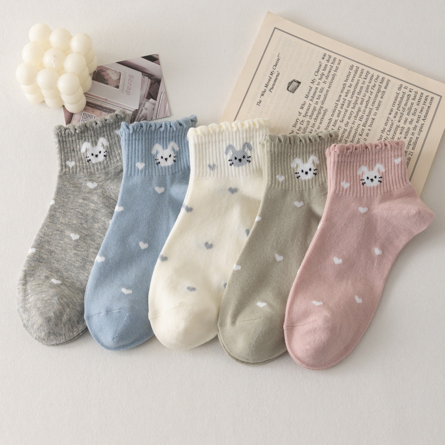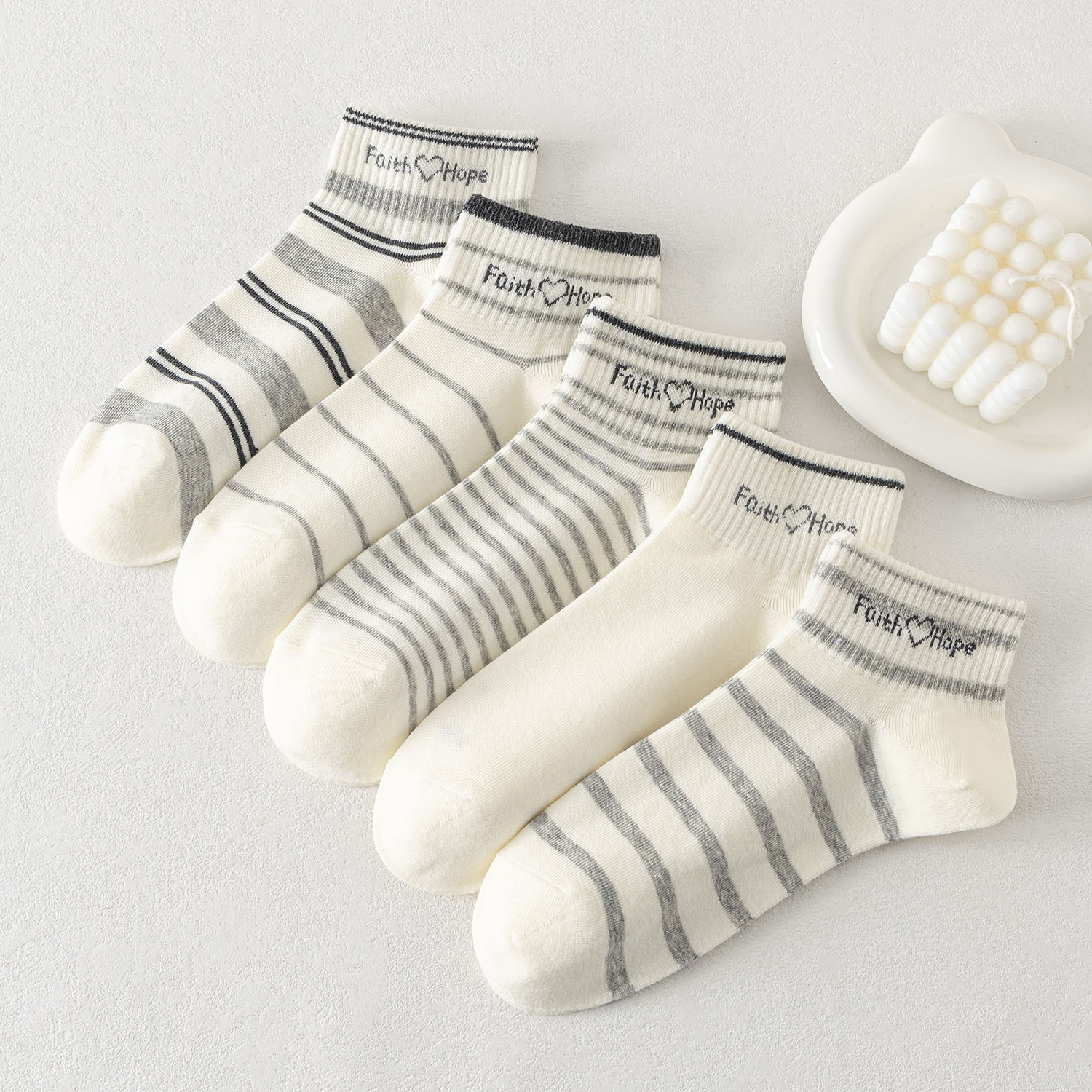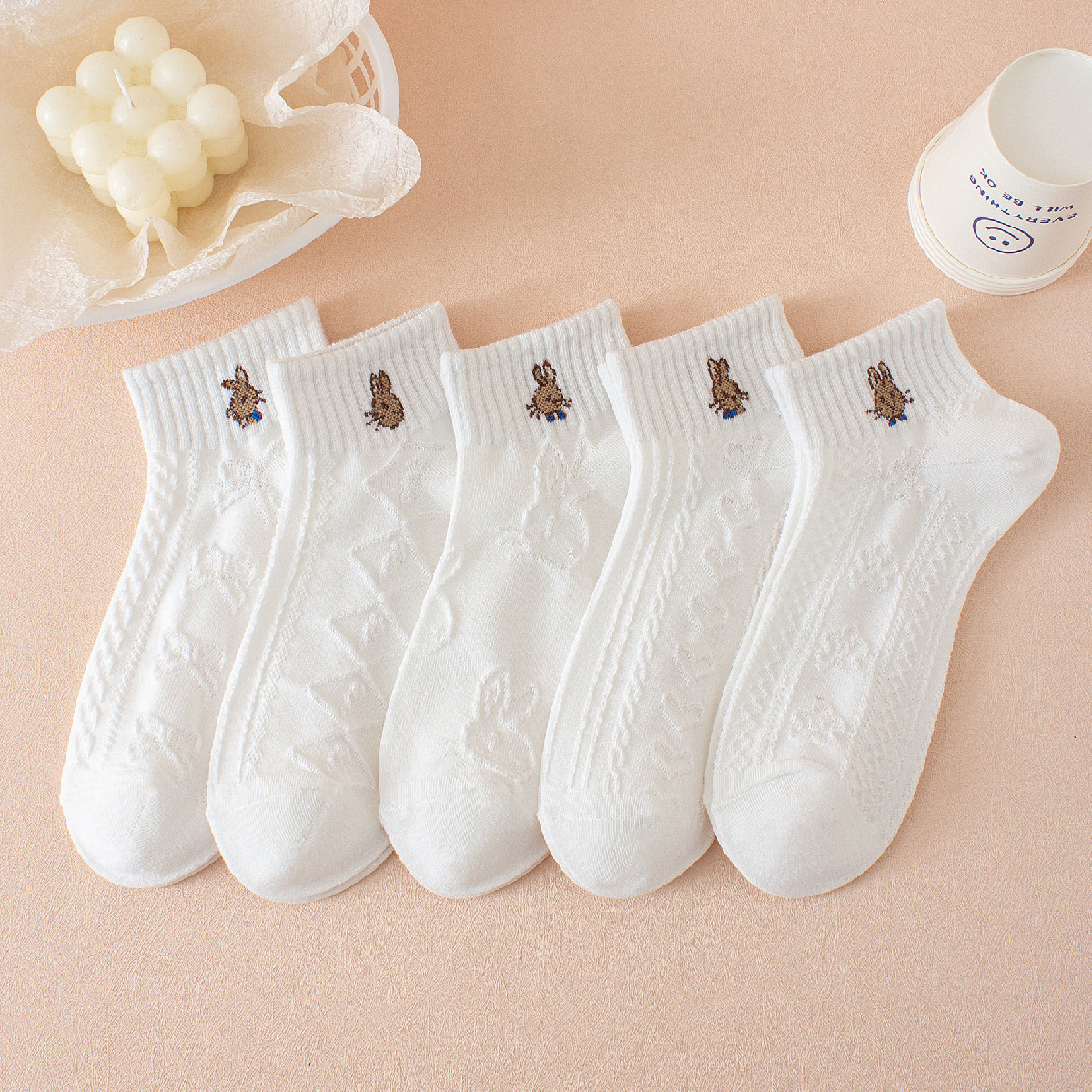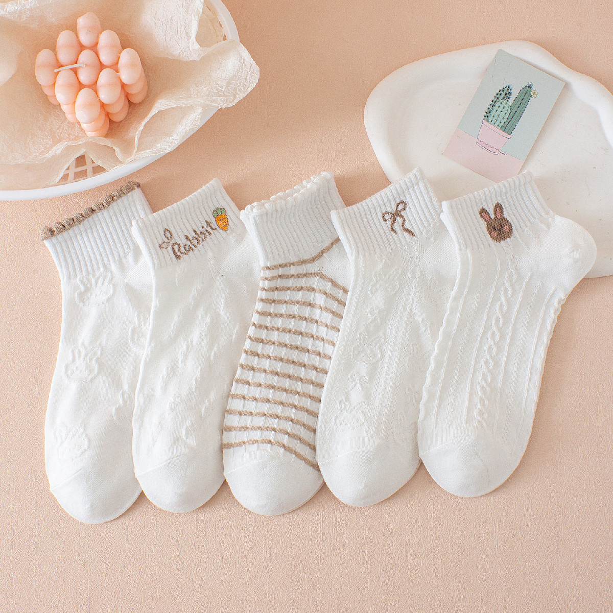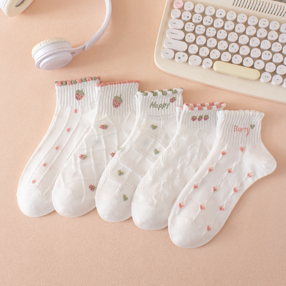 봄과 여름 어린이를위한 짧은 양말 얇은 흰색 사랑 통기성 땀 흡수 스포츠 귀여운 학생면 양말 작은 흰색 신발과 얕은 입스토어 가기