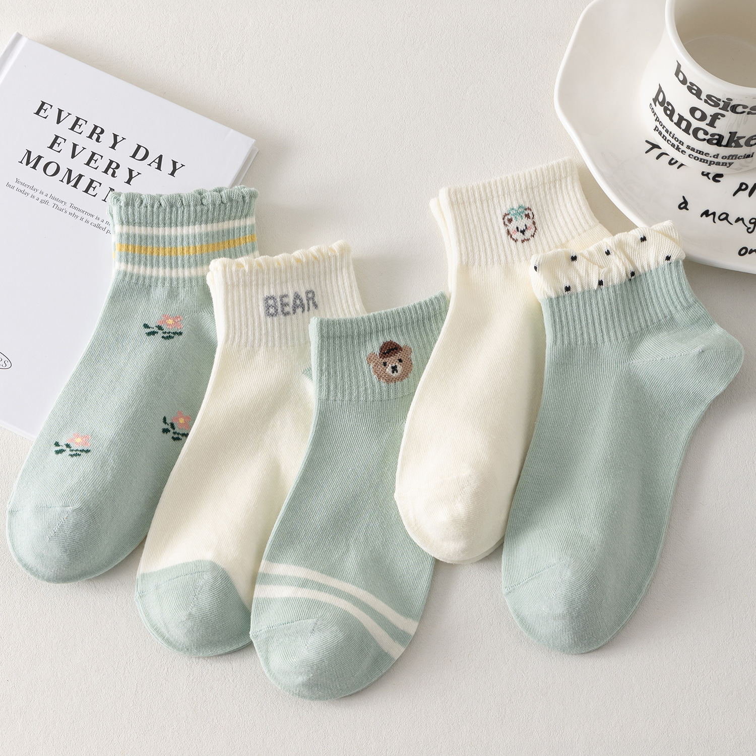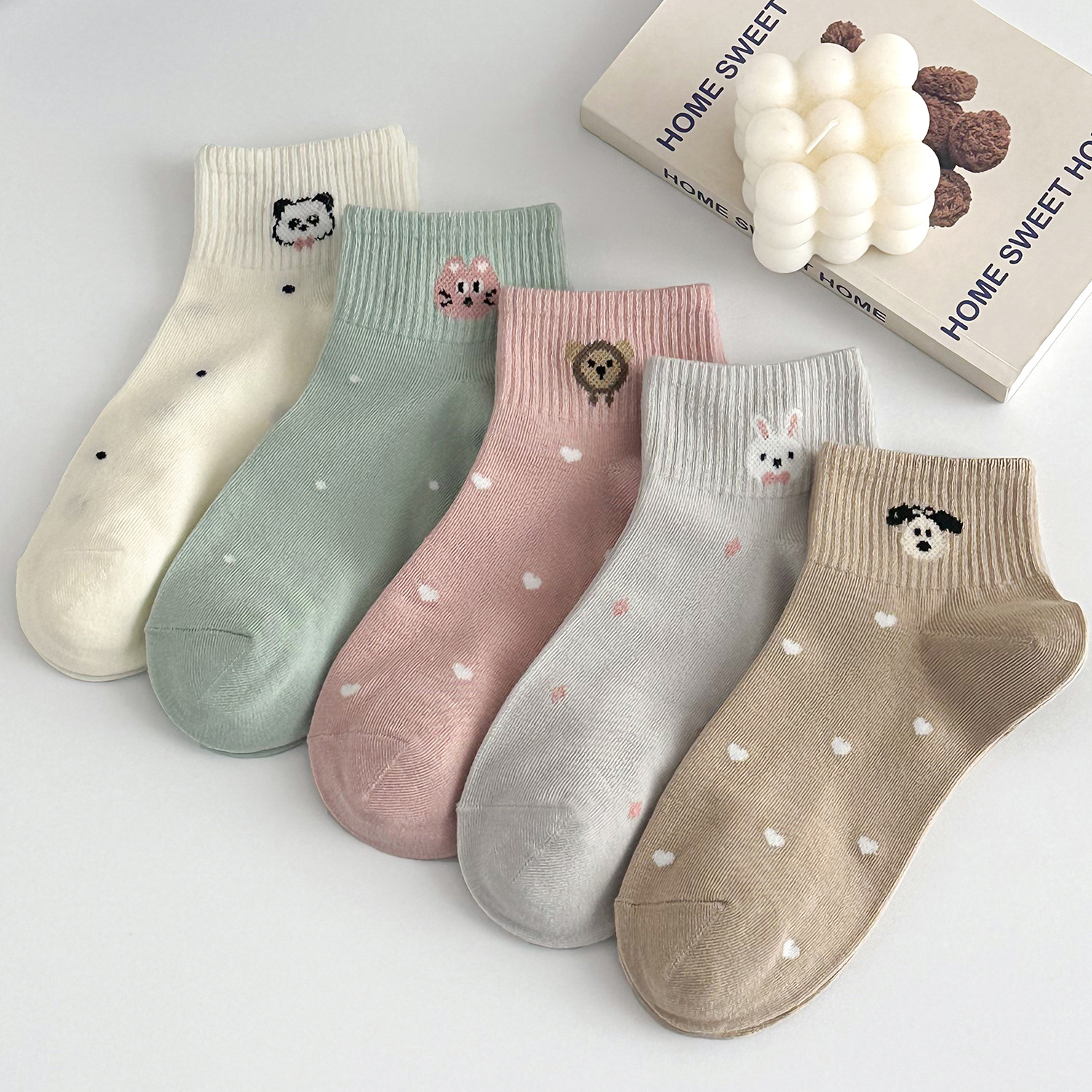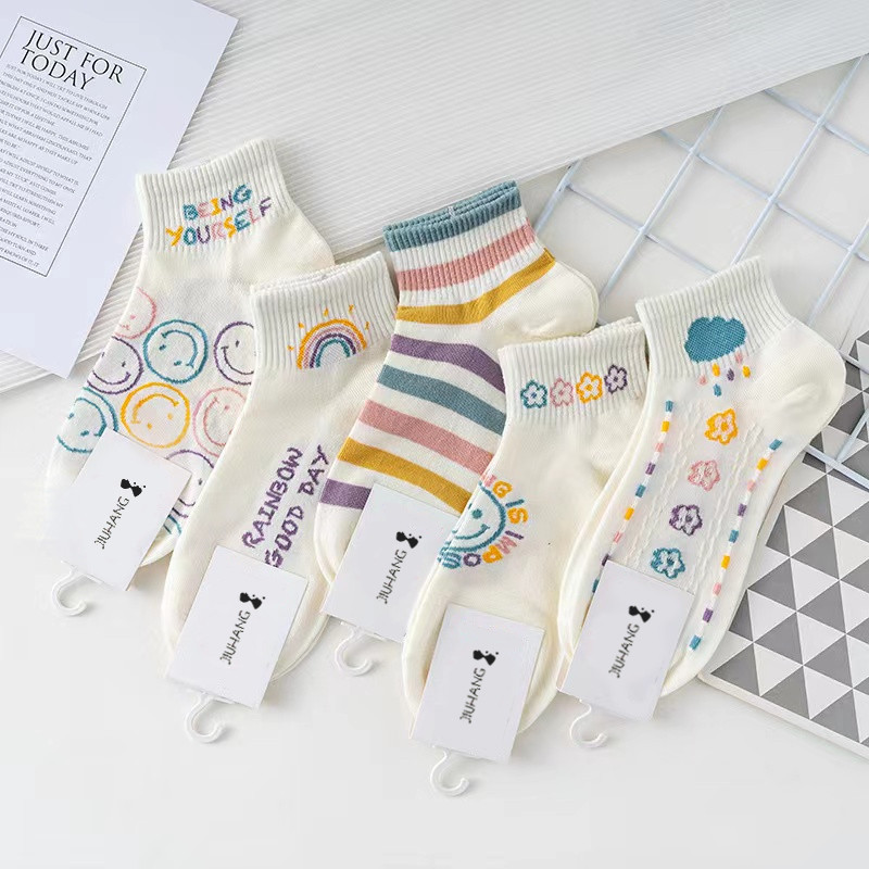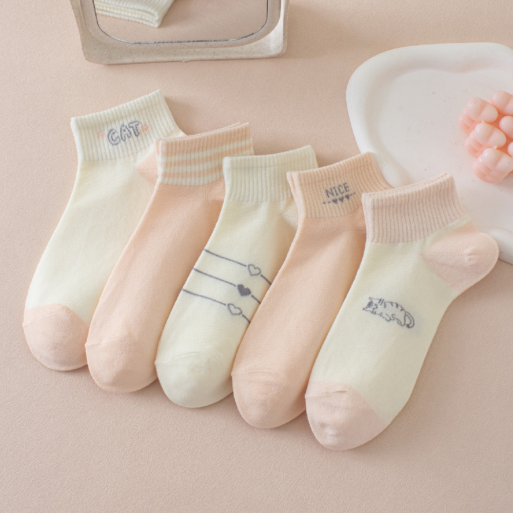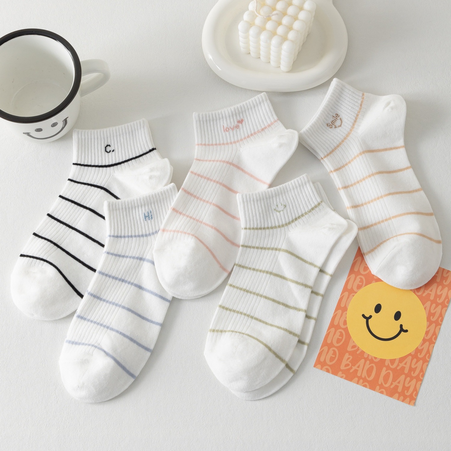 봄과 여름 어린이를위한 짧은 양말 얇은 흰색 사랑 통기성 땀 흡수 스포츠 귀여운 학생면 양말 작은 흰색 신발과 얕은 입스토어 가기