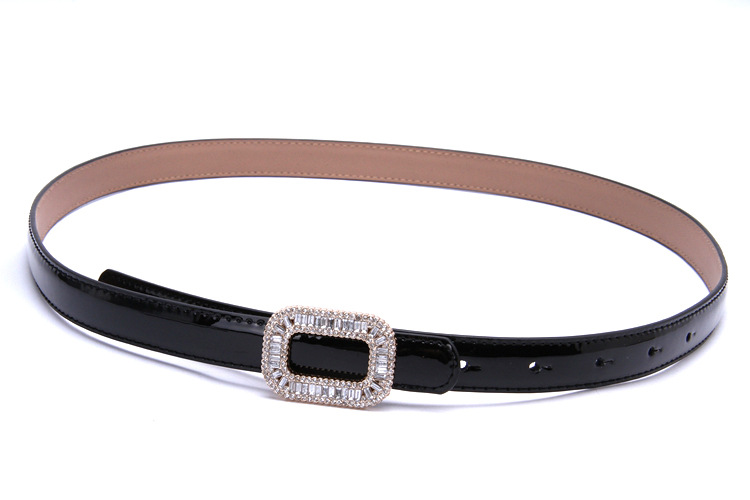 재고 도매 여성 가죽 얇은 벨트 다이아몬드 박힌 특허 가죽 벨트 여성 한국 패션 올매치 소가죽 벨트스토어 가기