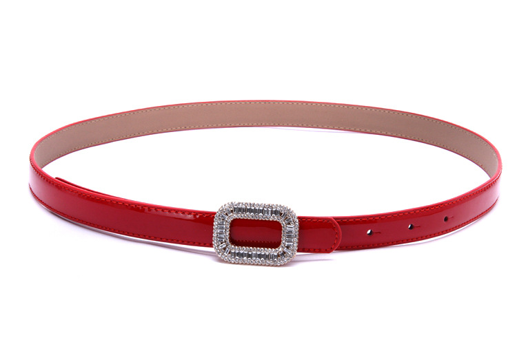 재고 도매 여성 가죽 얇은 벨트 다이아몬드 박힌 특허 가죽 벨트 여성 한국 패션 올매치 소가죽 벨트