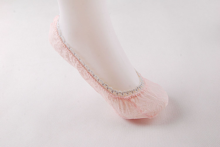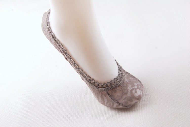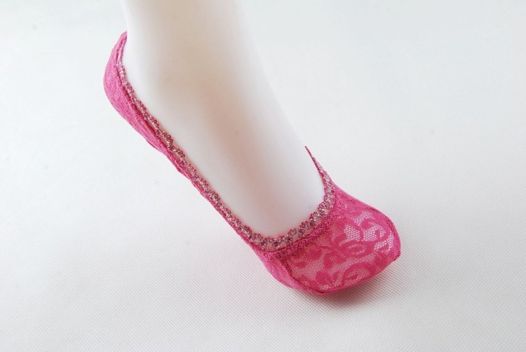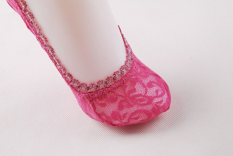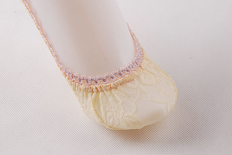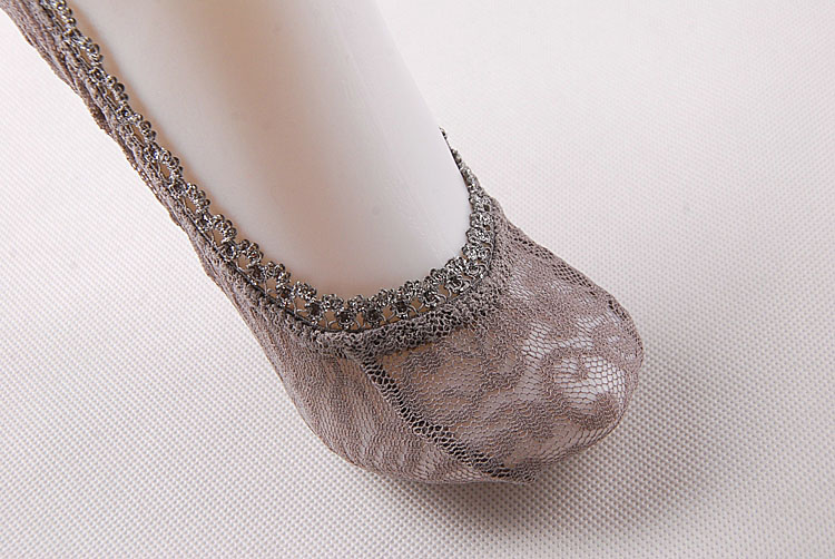 보트 양말 여성용 보이지 않는 얕은 입 골드 실크 주름 얇은 레이스 중공 그물 양말 스폰지 패드스토어 가기