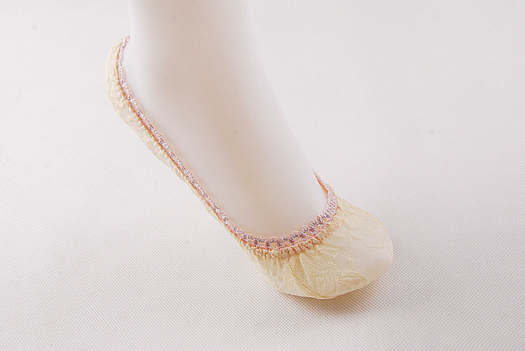 보트 양말 여성용 보이지 않는 얕은 입 골드 실크 주름 얇은 레이스 중공 그물 양말 스폰지 패드