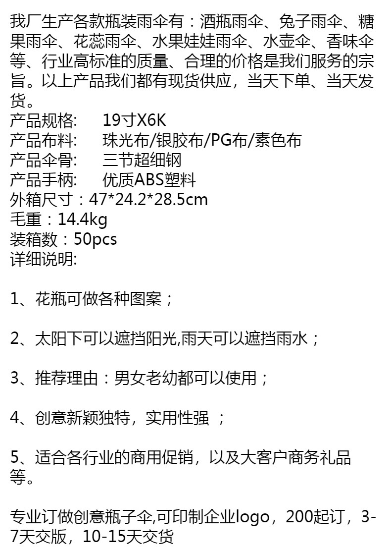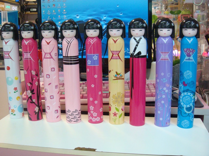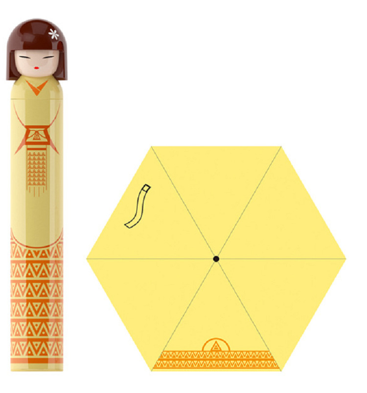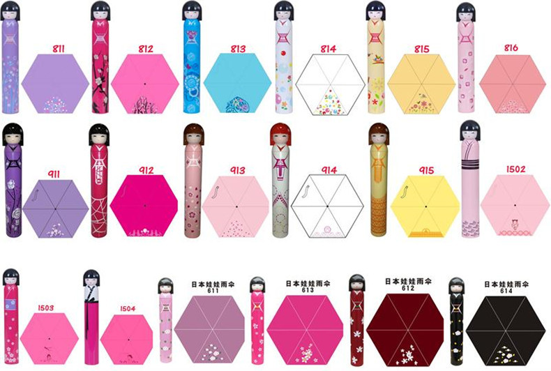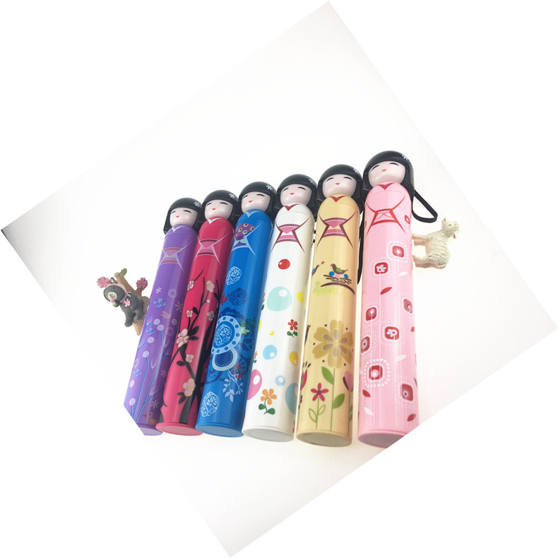 창의적인 만화 중국 소녀 인형 병 우산 와인 병 우산 연필 우산 접이식 학생용 기성품 우산