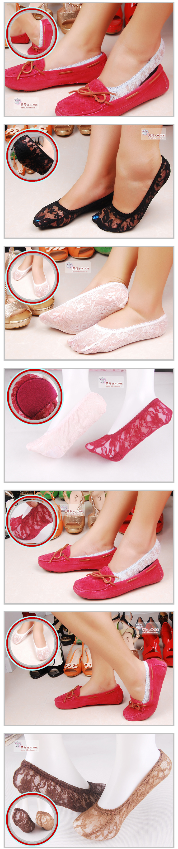 레이스 메쉬 보트 양말 여성용 보이지 않는 양말 얕은 양말 발 스폰지 패드 짧은 양말 바닥 양말 도매스토어 가기