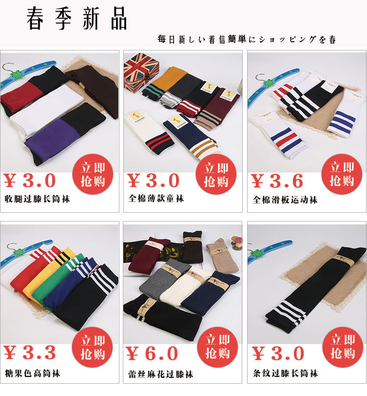 糖果色高橡筋过膝袜 三条杠高筒足球袜 长筒袜子