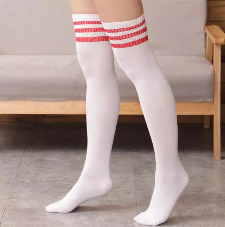 3 바 면화 남성 및 여성 스포츠 양말 봄과 여름 높은 고무 무릎 양말 긴 축구 양말 제조 업체 도매스토어 가기