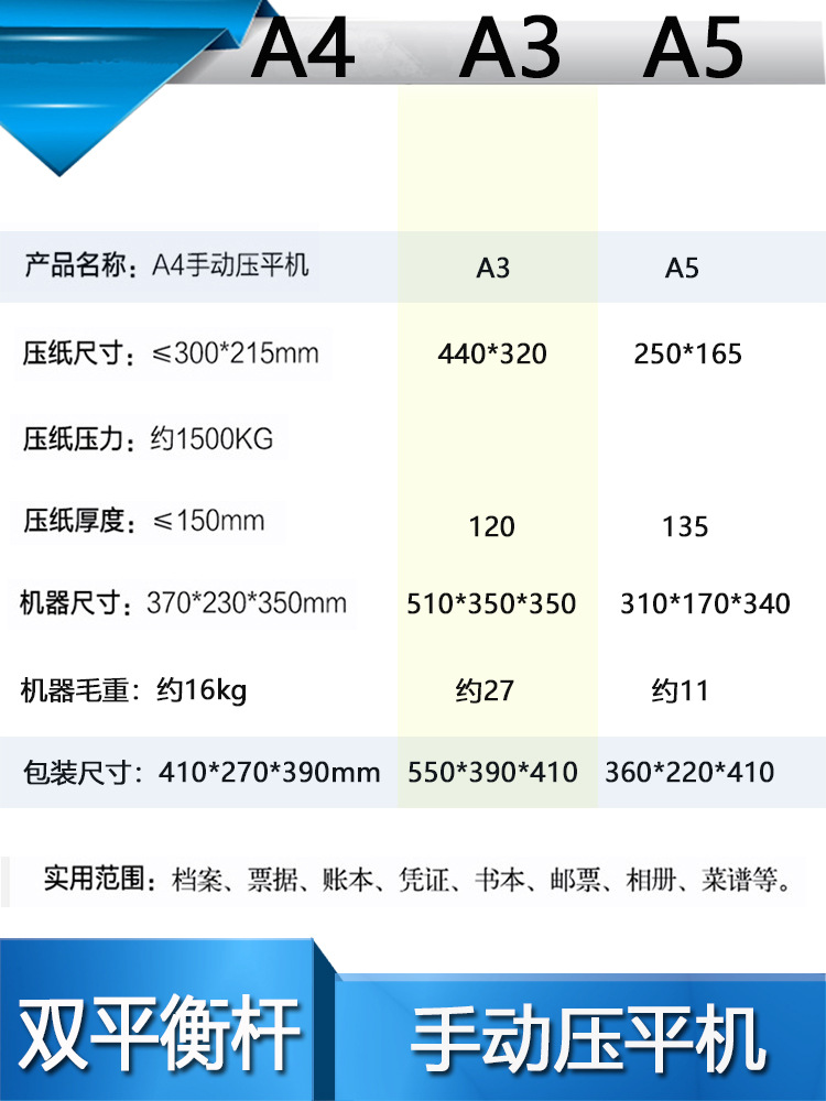 Flatter 수동 A4 회계 바우처 Bill Express Paper Press A3 Book Press 파일 금융스토어 가기