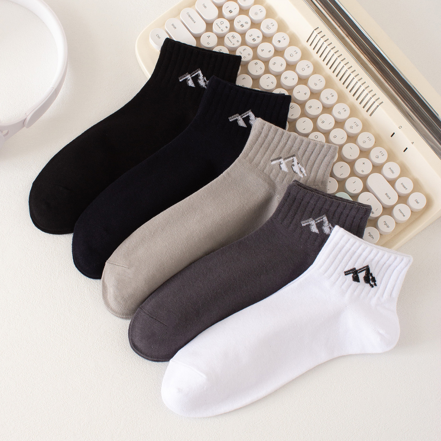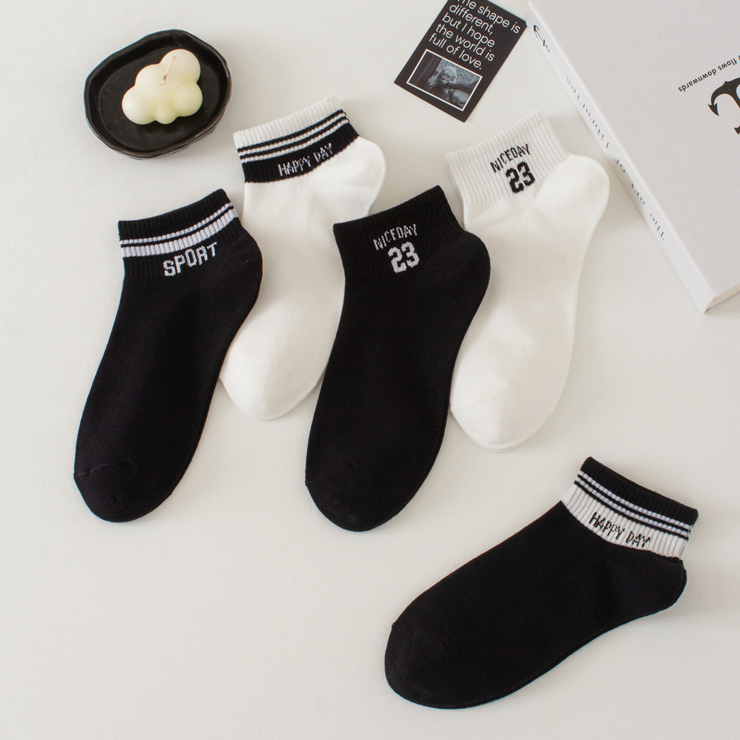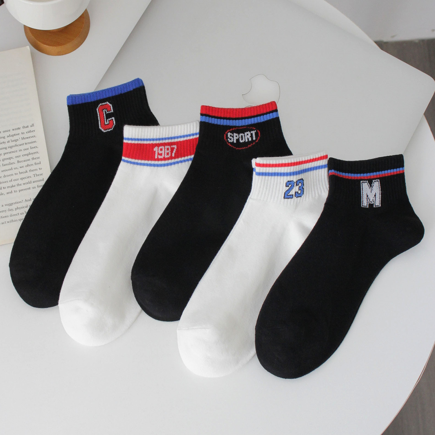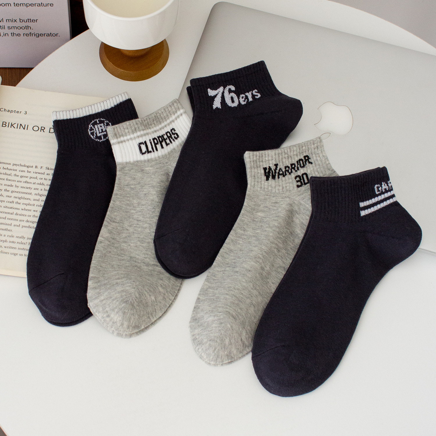 가을 겨울 양말 남성 양말 순면 탈취제 땀 흡수 스포츠 소년 흑백 짧은 양말 작업복 스타일 항균 및 편안함