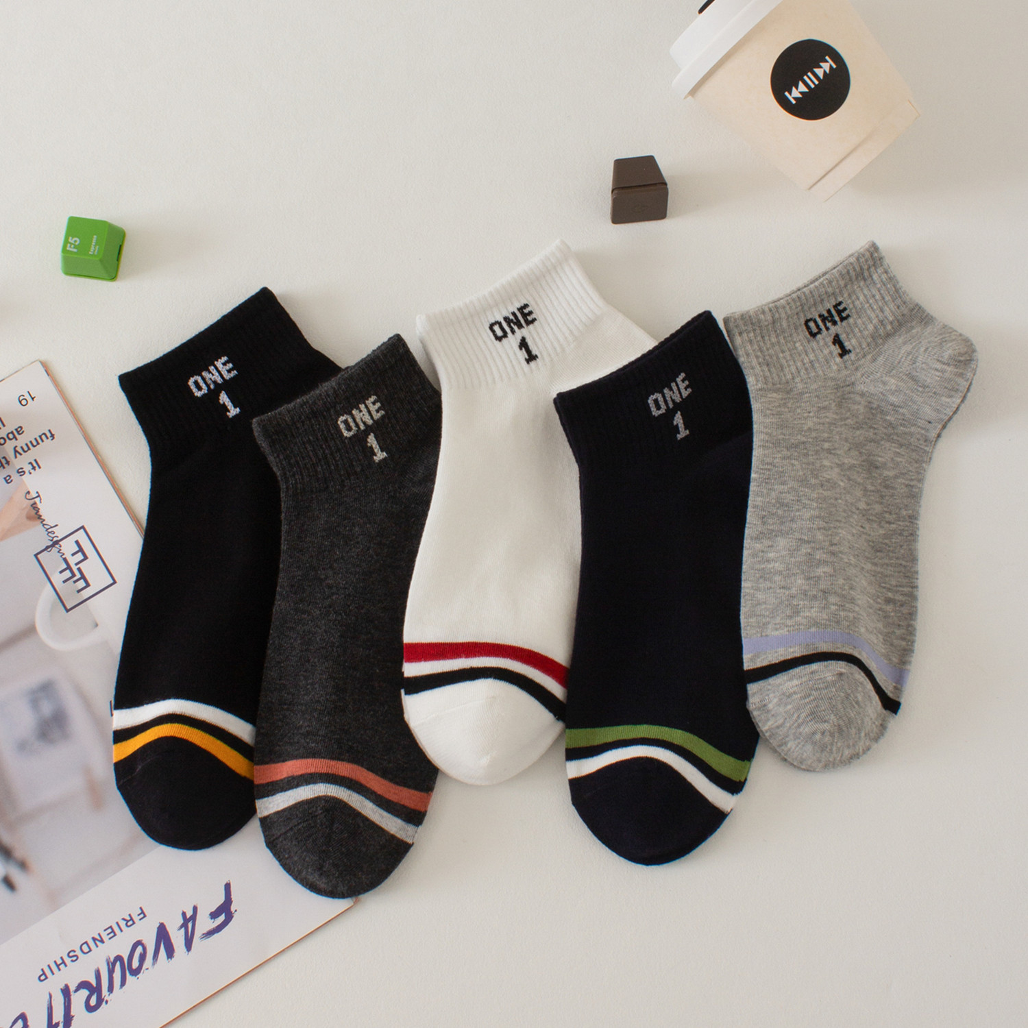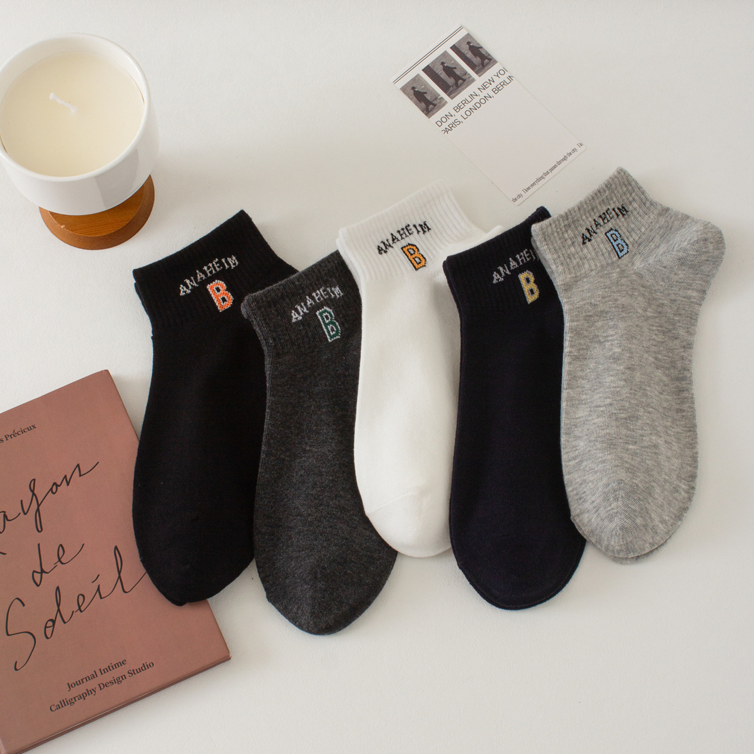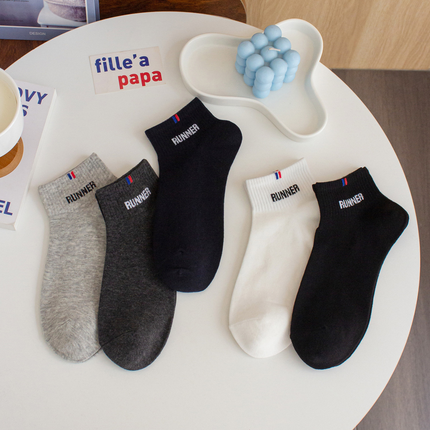 가을 겨울 양말 남성 양말 순면 탈취제 땀 흡수 스포츠 소년 흑백 짧은 양말 작업복 스타일 항균 및 편안함