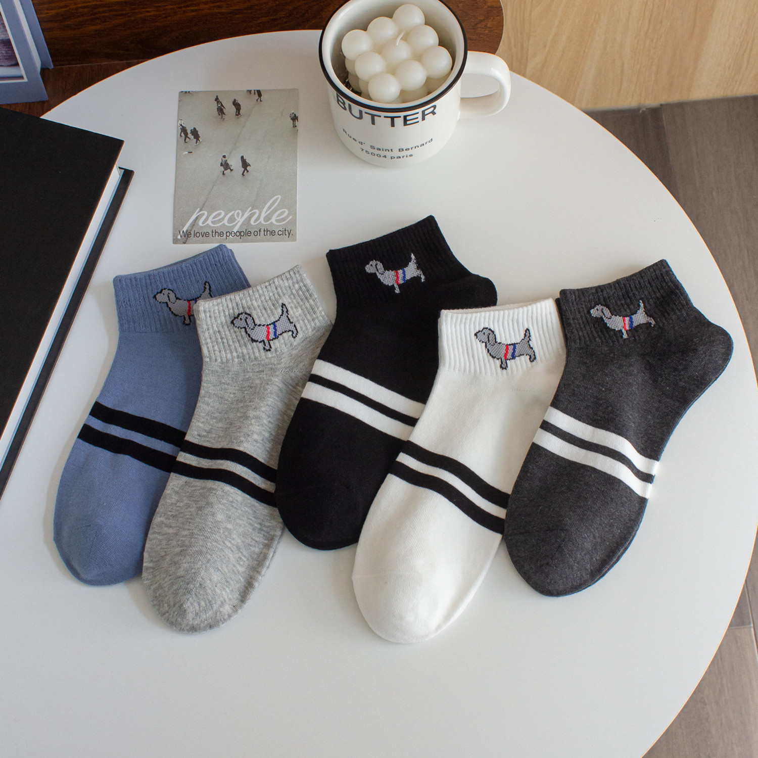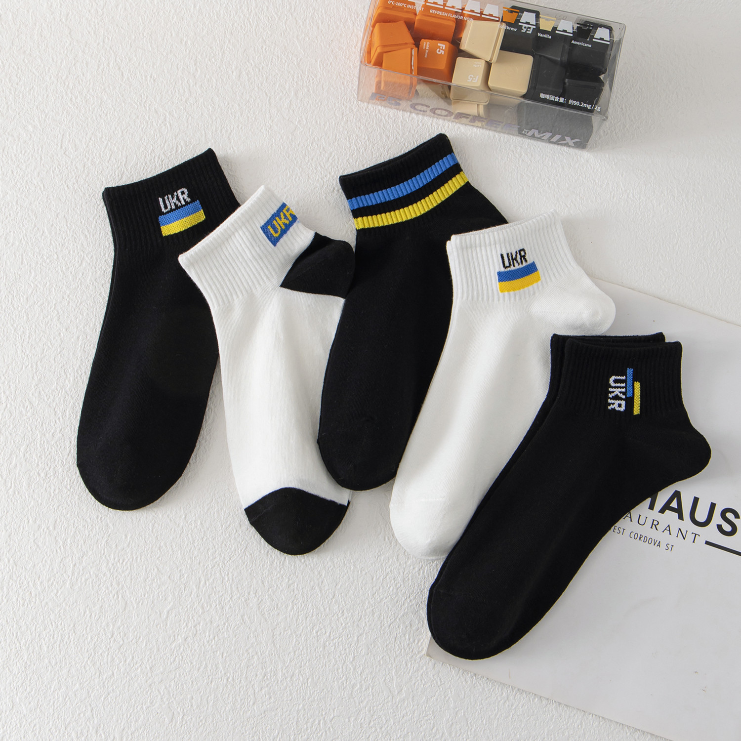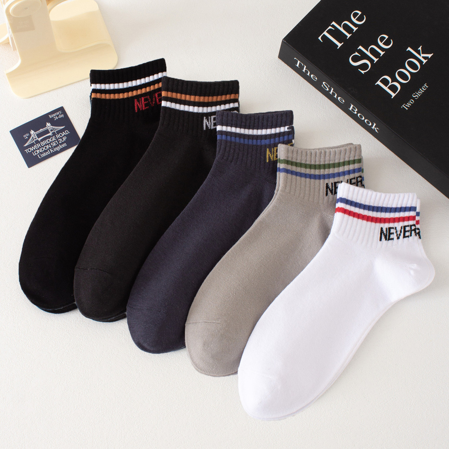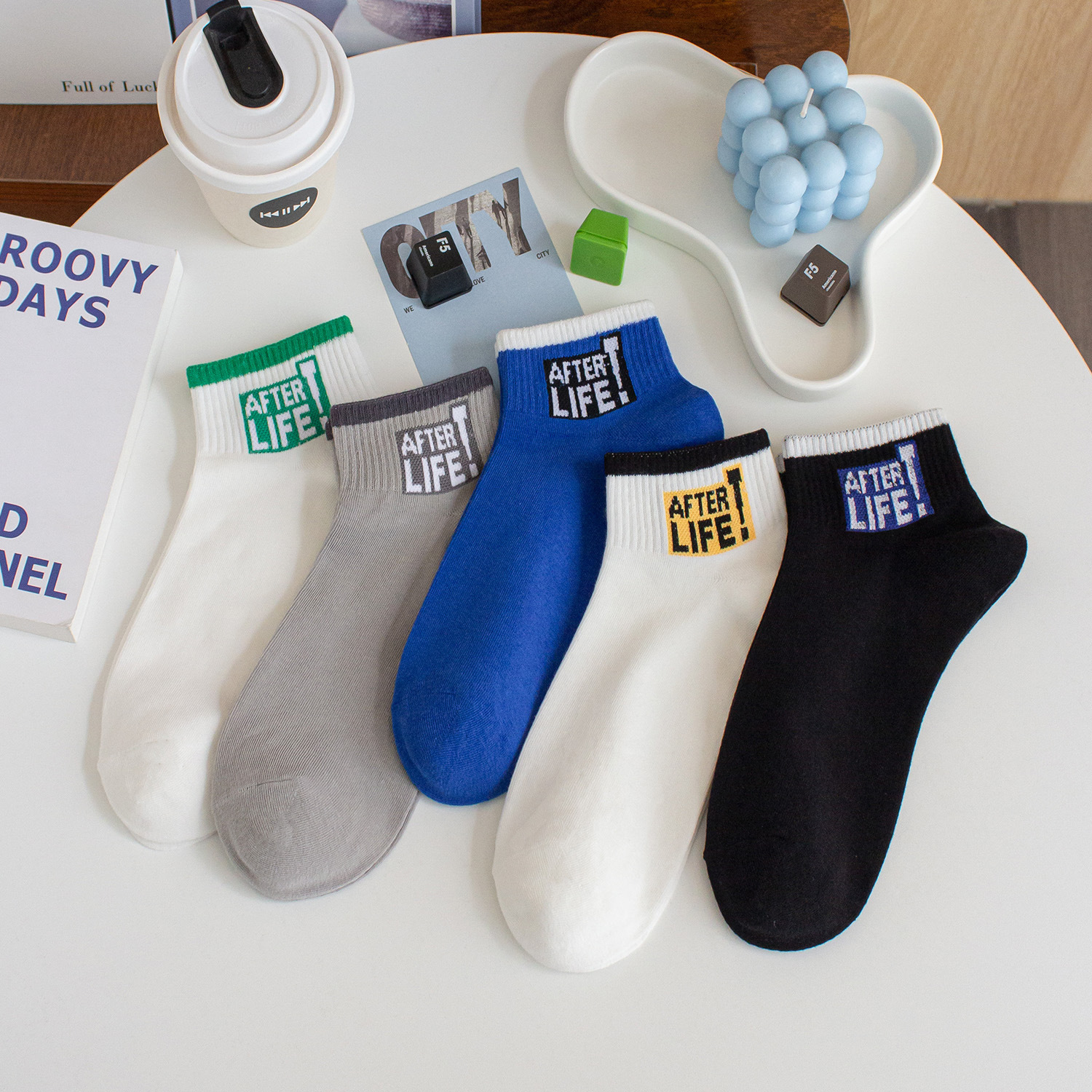 가을 겨울 양말 남성 양말 순면 탈취제 땀 흡수 스포츠 소년 흑백 짧은 양말 작업복 스타일 항균 및 편안함