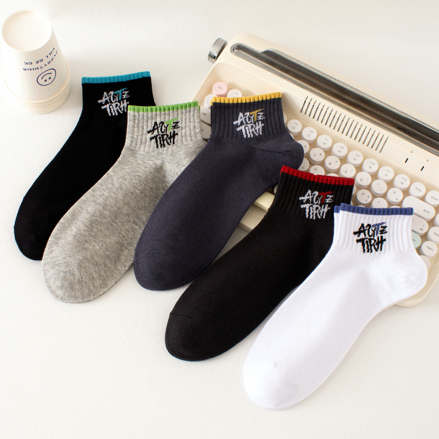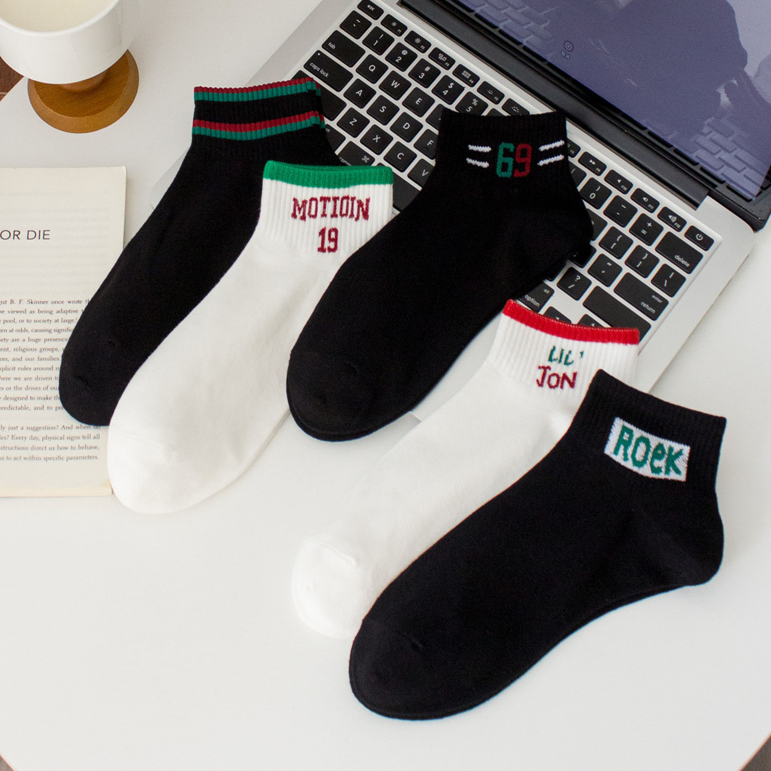 가을 겨울 양말 남성 양말 순면 탈취제 땀 흡수 스포츠 소년 흑백 짧은 양말 작업복 스타일 항균 및 편안함스토어 가기