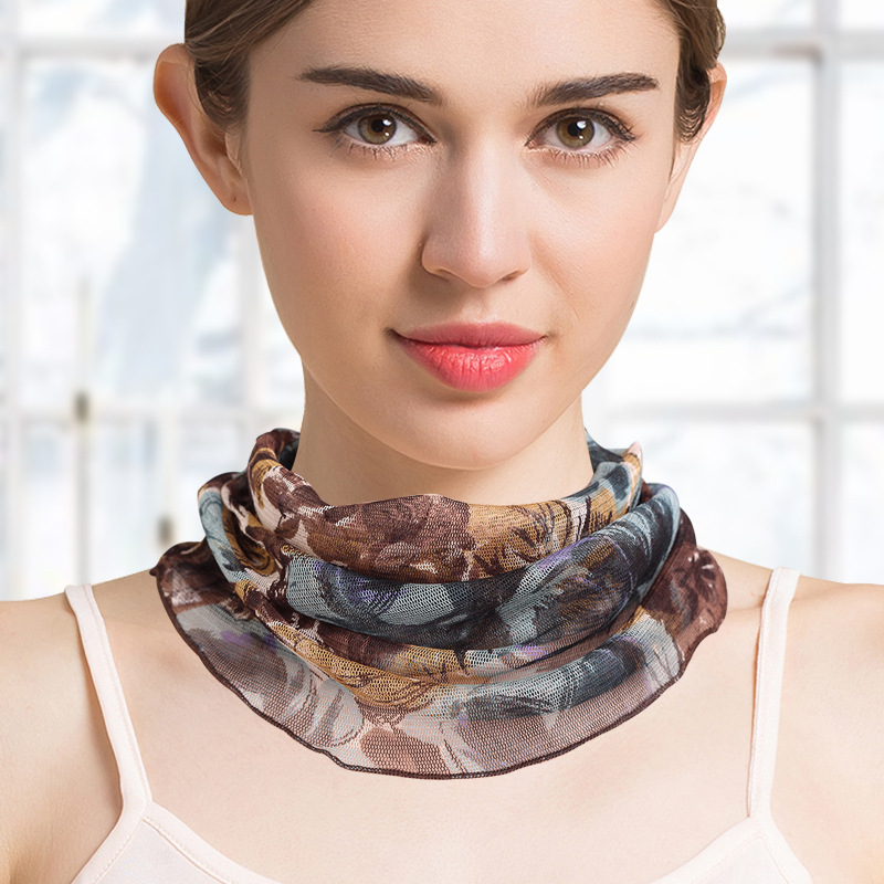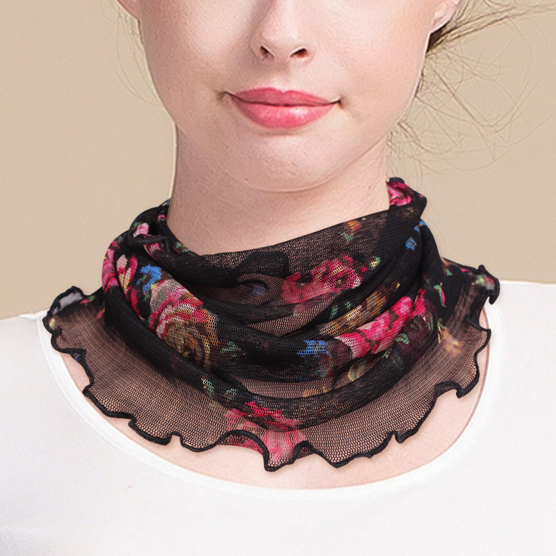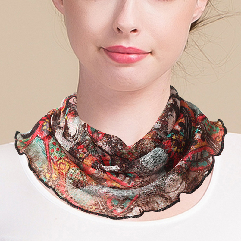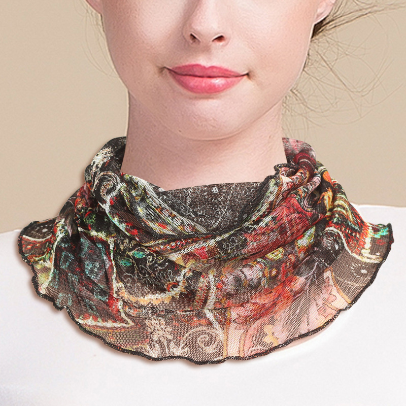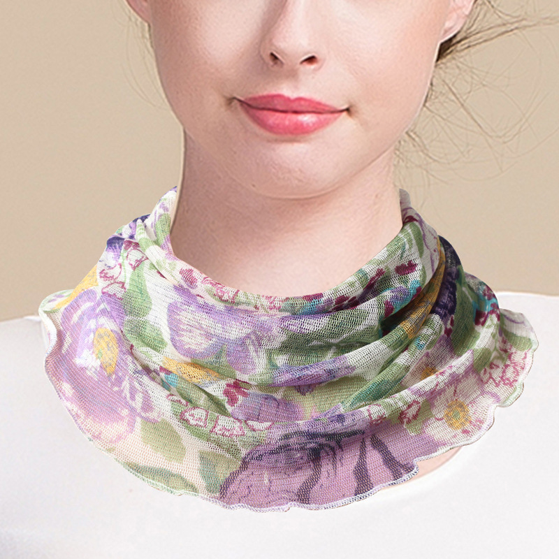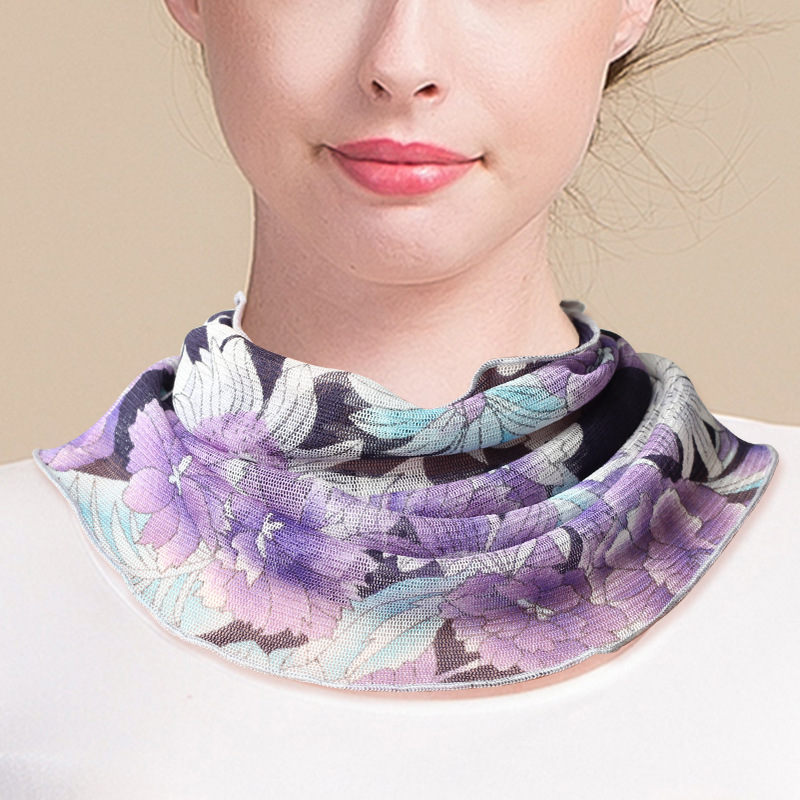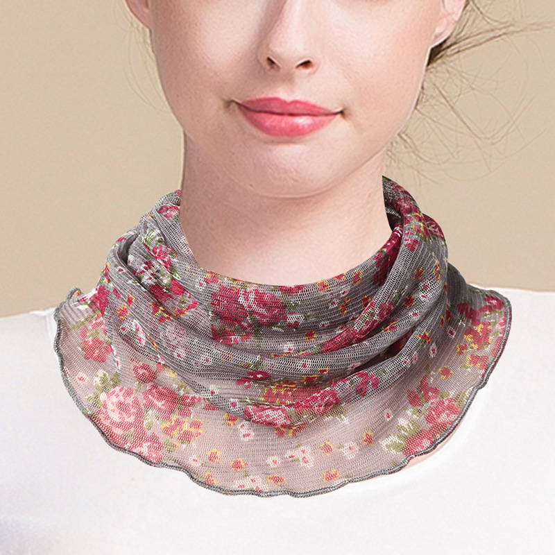 봄과 여름 실크 스카프 여성의 풀오버 스카프 뽕나무 실크 니트 목 세트 작은 실크 스카프 선 스크린 그늘 메쉬 가짜 목걸이