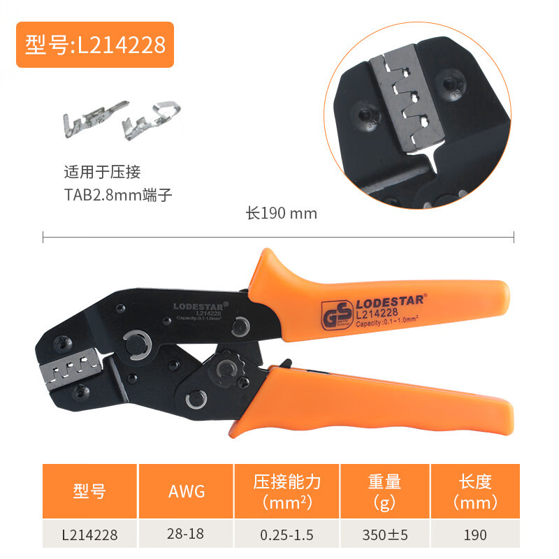 深圳乐达 L214228 棘轮式端子压线钳 LODESTAR压线钳0.25-1.5