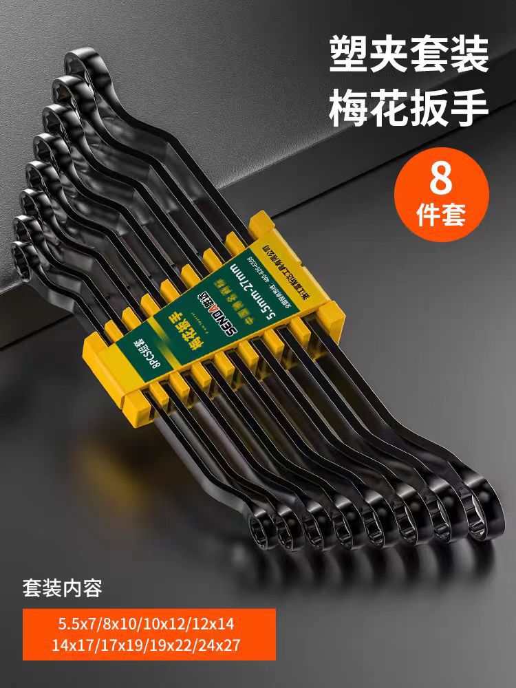 Shengda 더블 엔드 링 렌치 블랙 안경 렌치 기계 수리 자동 수리 렌치 세트 하드웨어 도구 세트 도매스토어 가기