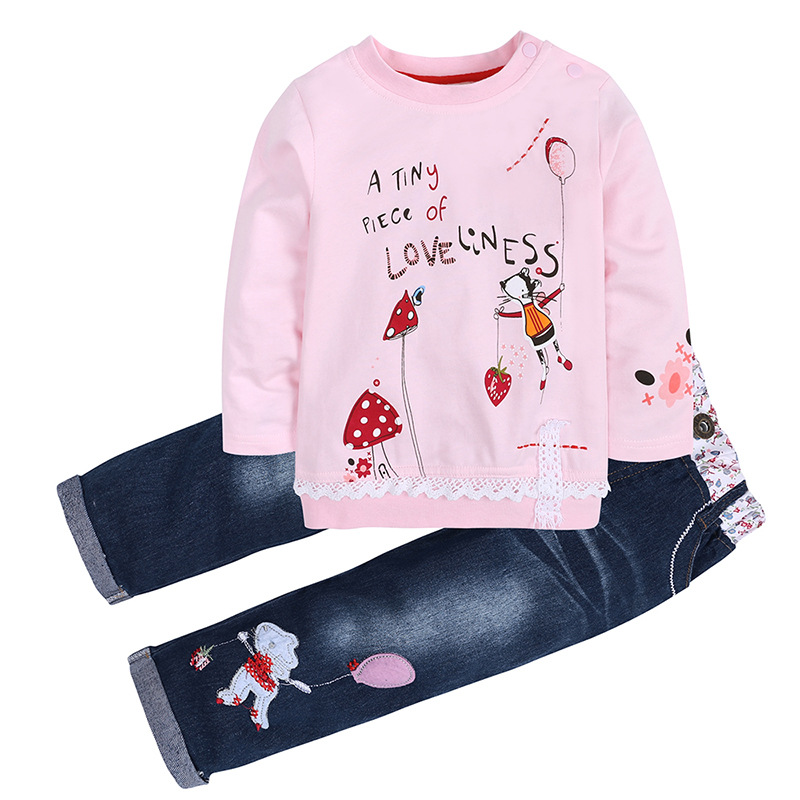 【款式】代理外贸童装儿童套装厂家批发春秋装可爱女童碎花长袖牛仔套装【面料】棉