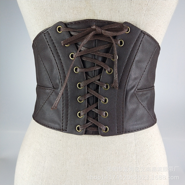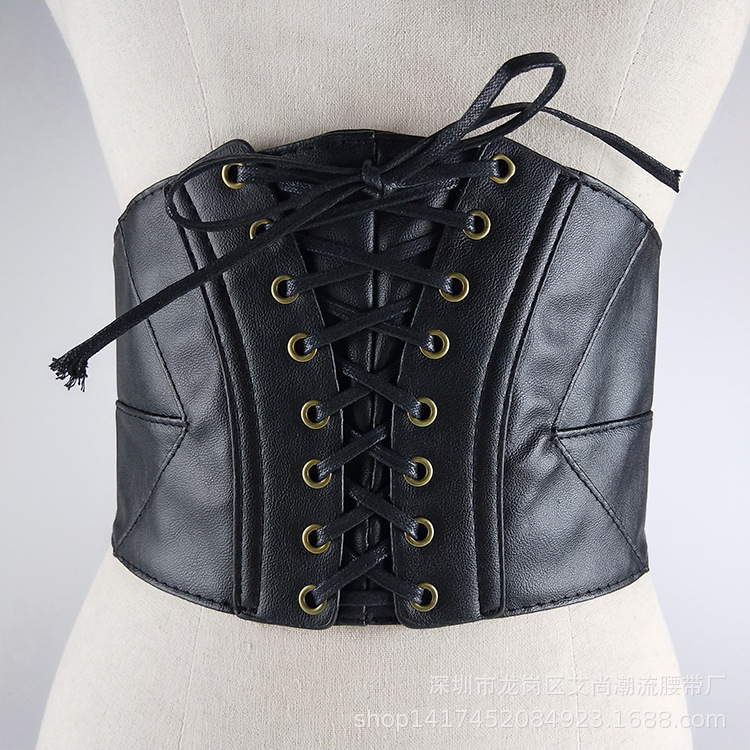 여성용 벨트 장식 크로스 보더 유럽 및 미국 복부 바디 쉐이핑 PU 여성용 모조 벨트 모든 매치 빈티지 탄성 허리 씰 겉옷