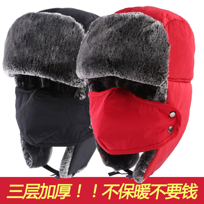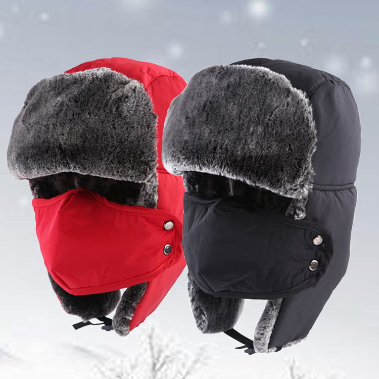 국경 간 레이 펑 모자 아마존 마스크 모자 겨울 보호 기모 따뜻한 단색 모자 공장 판매 겨울 모자스토어 가기
