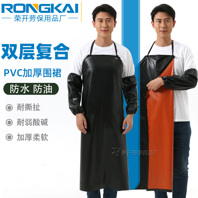 방수 앞치마 내유성 슬리브 PVC 소 힘줄 두꺼운 복합 플라스틱 식품 공장 화학 빨강 및 검정 소매 방오 배치스토어 가기