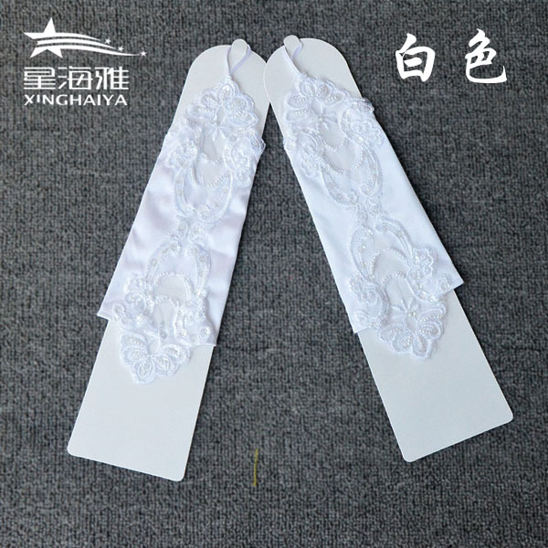 핑거리스 레이스 장갑, 플라워 걸 드레스, 아동 웨딩드레스 액세서리, 화이트 걸스 롱 장갑, 꽃무늬 비즈 소매스토어 가기