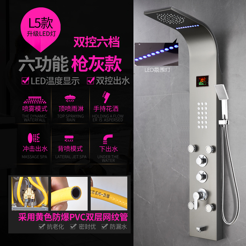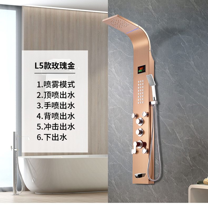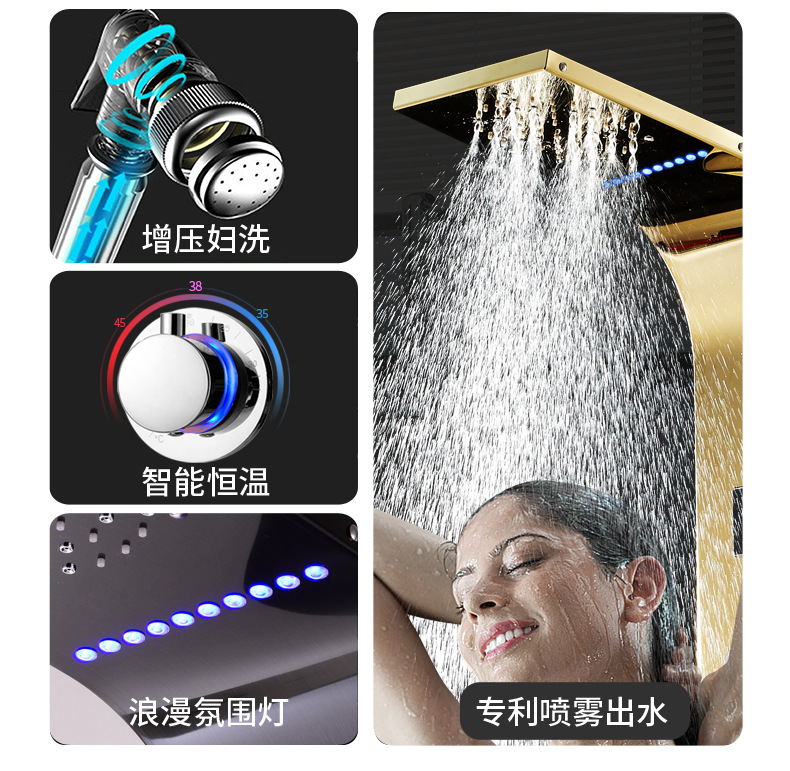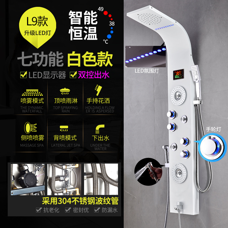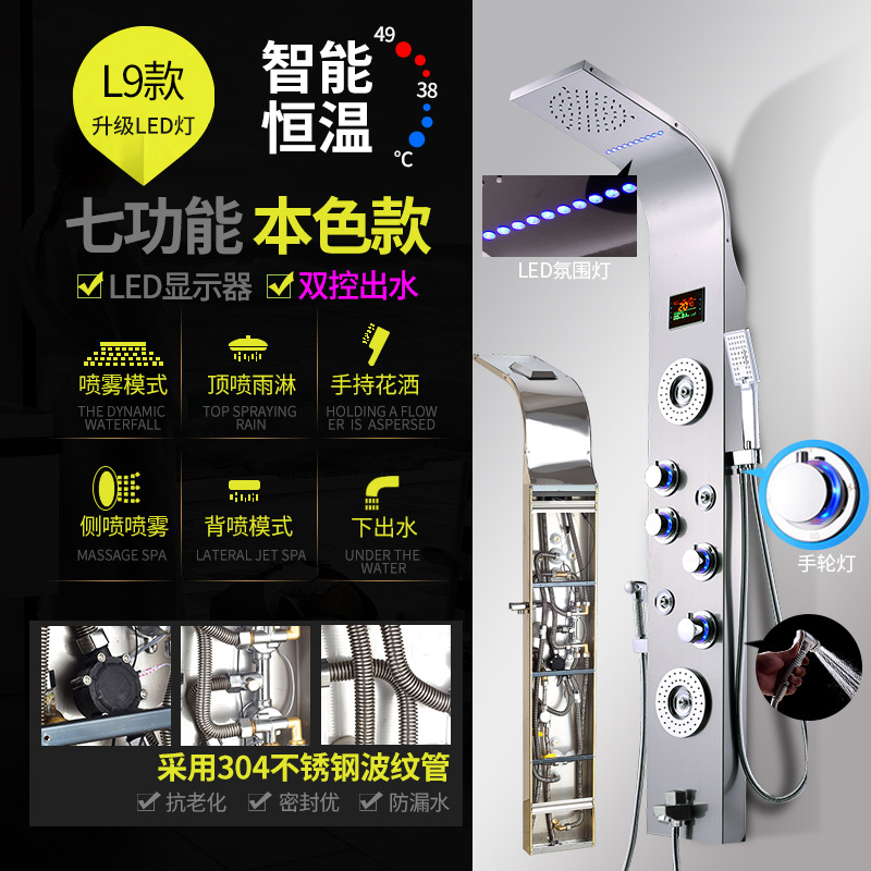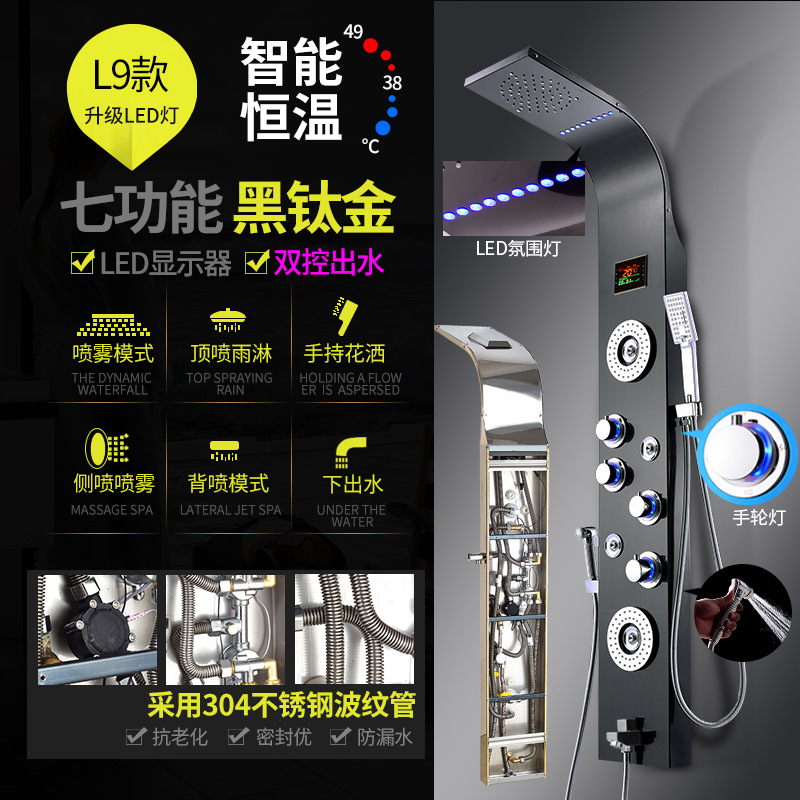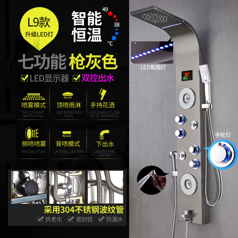 Ou Shengdi 샤워 세트 일정 온도 스테인레스 스틸 램프 디지털 디스플레이 레인 스크린 샤워 칼럼 노즐 가정용 샤워