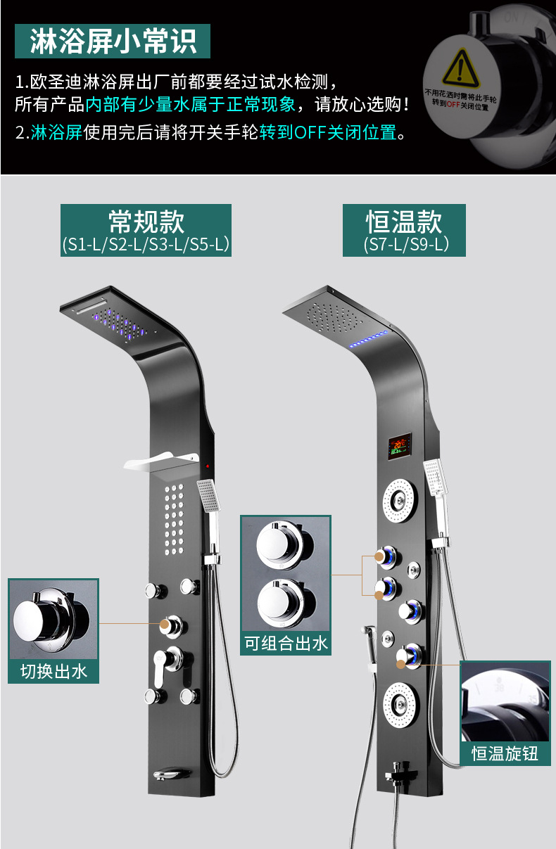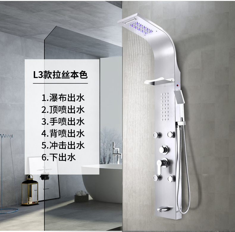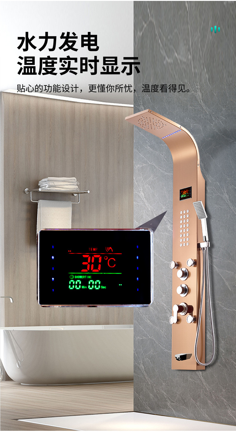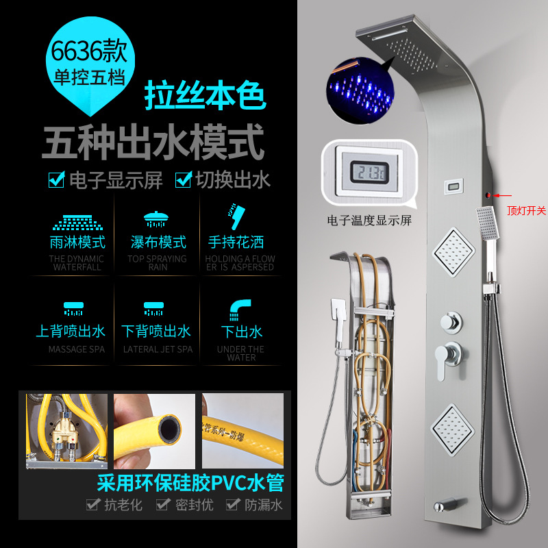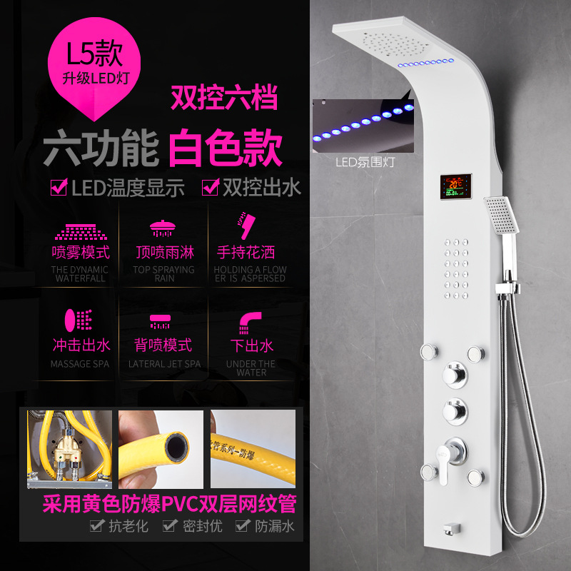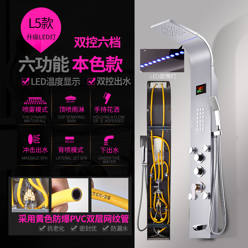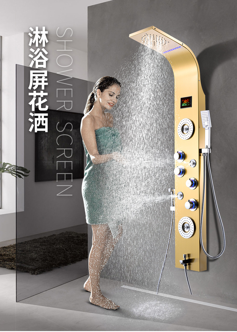 Ou Shengdi 샤워 세트 일정 온도 스테인레스 스틸 램프 디지털 디스플레이 레인 스크린 샤워 칼럼 노즐 가정용 샤워