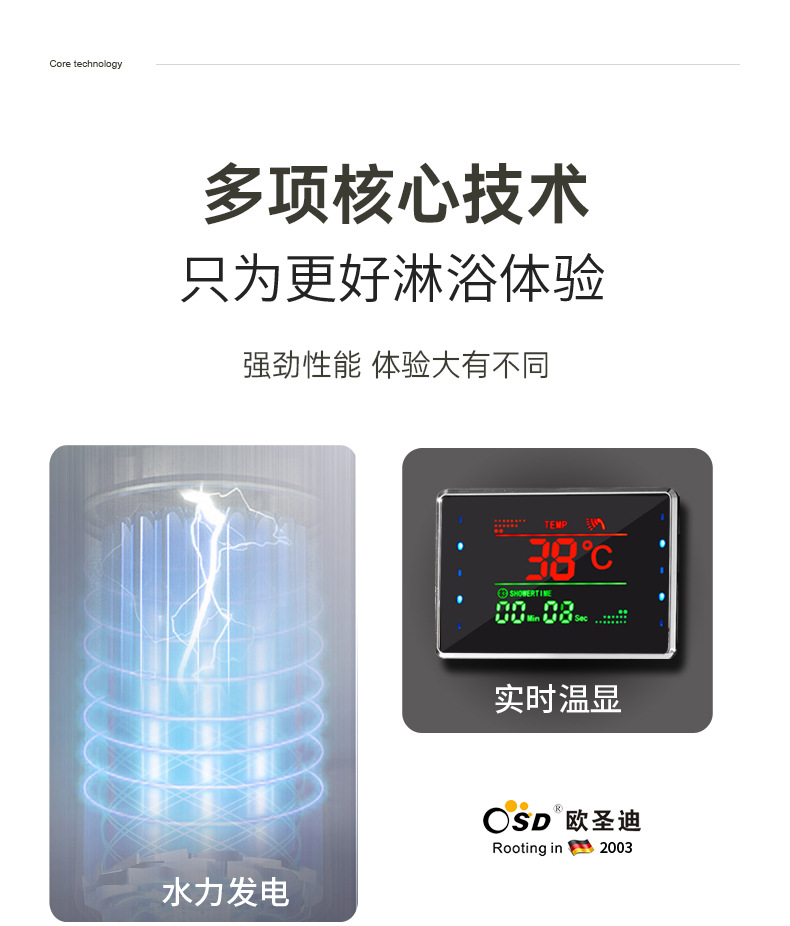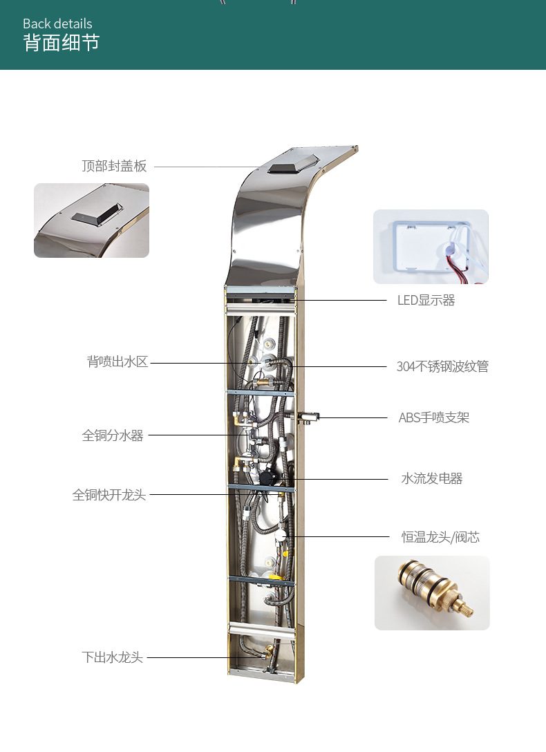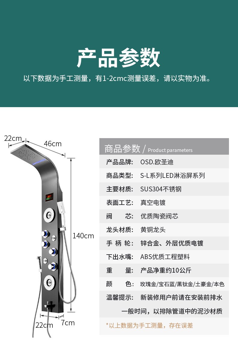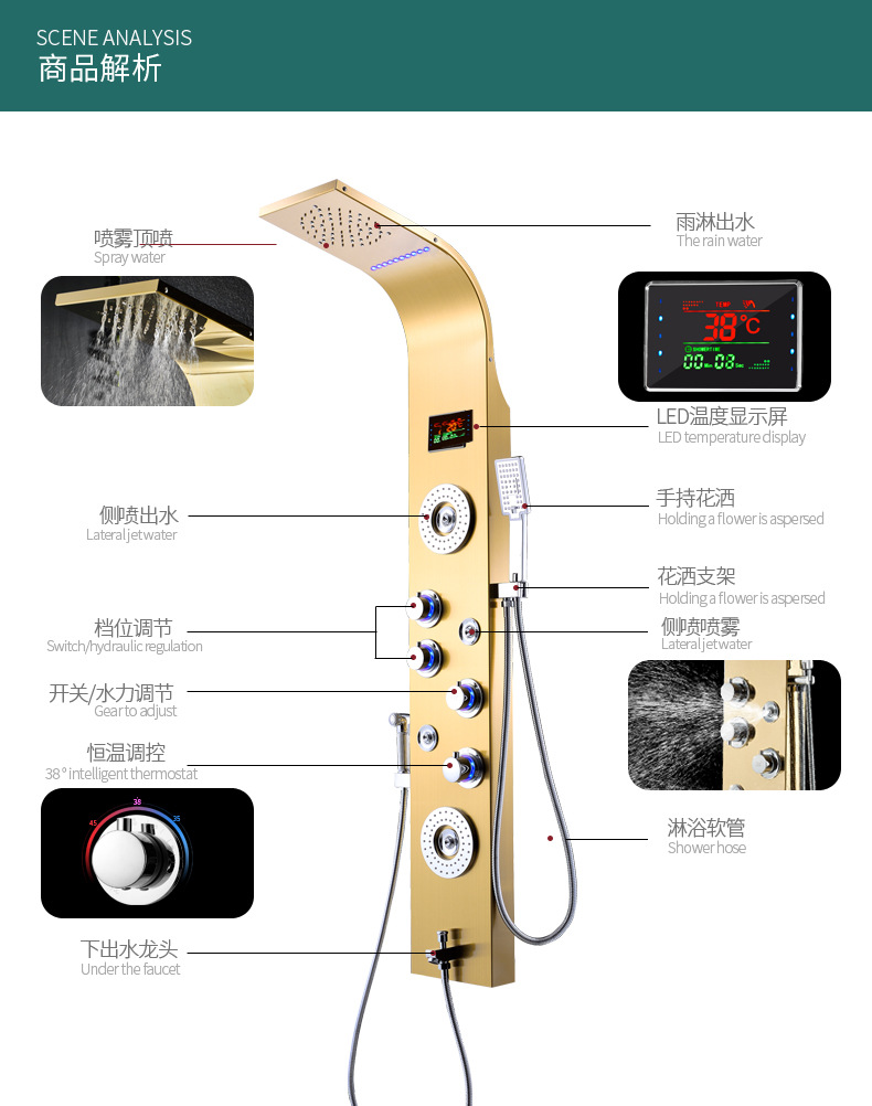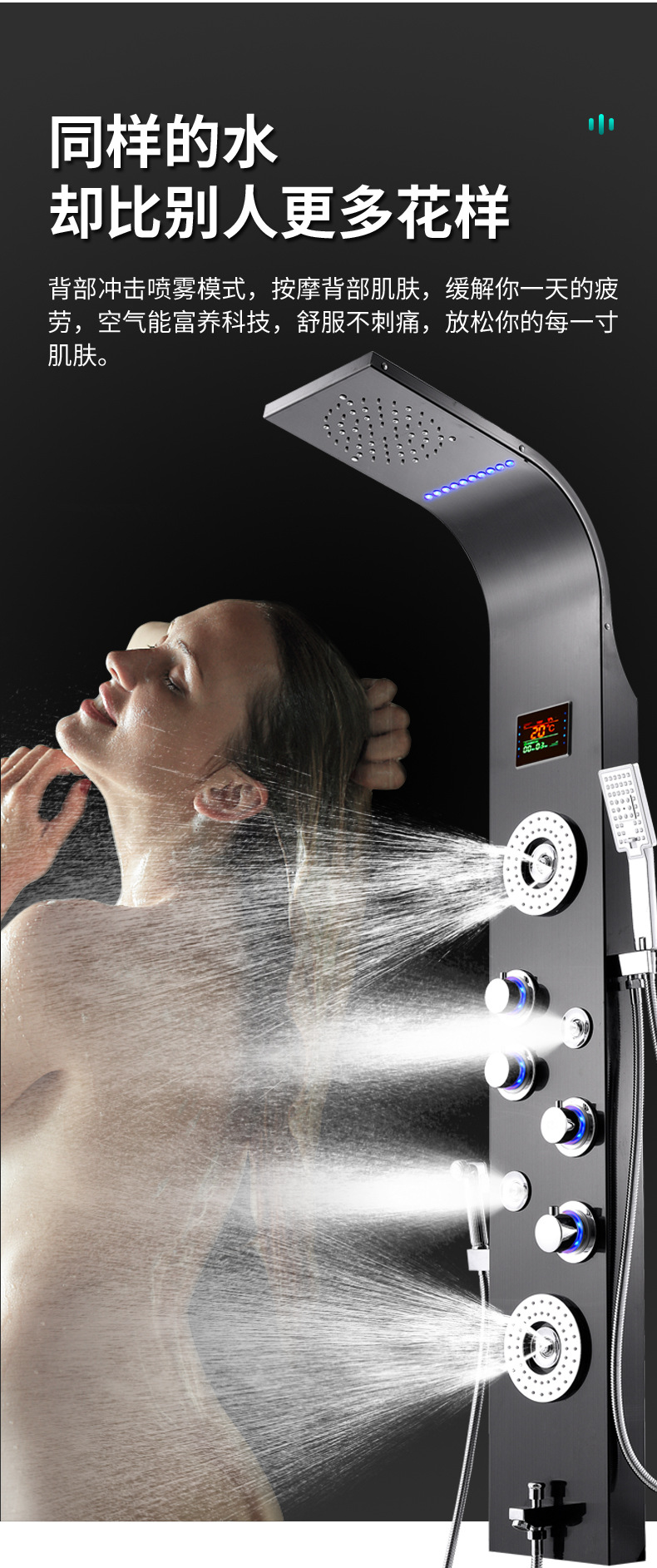 Ou Shengdi 샤워 세트 일정 온도 스테인레스 스틸 램프 디지털 디스플레이 레인 스크린 샤워 칼럼 노즐 가정용 샤워