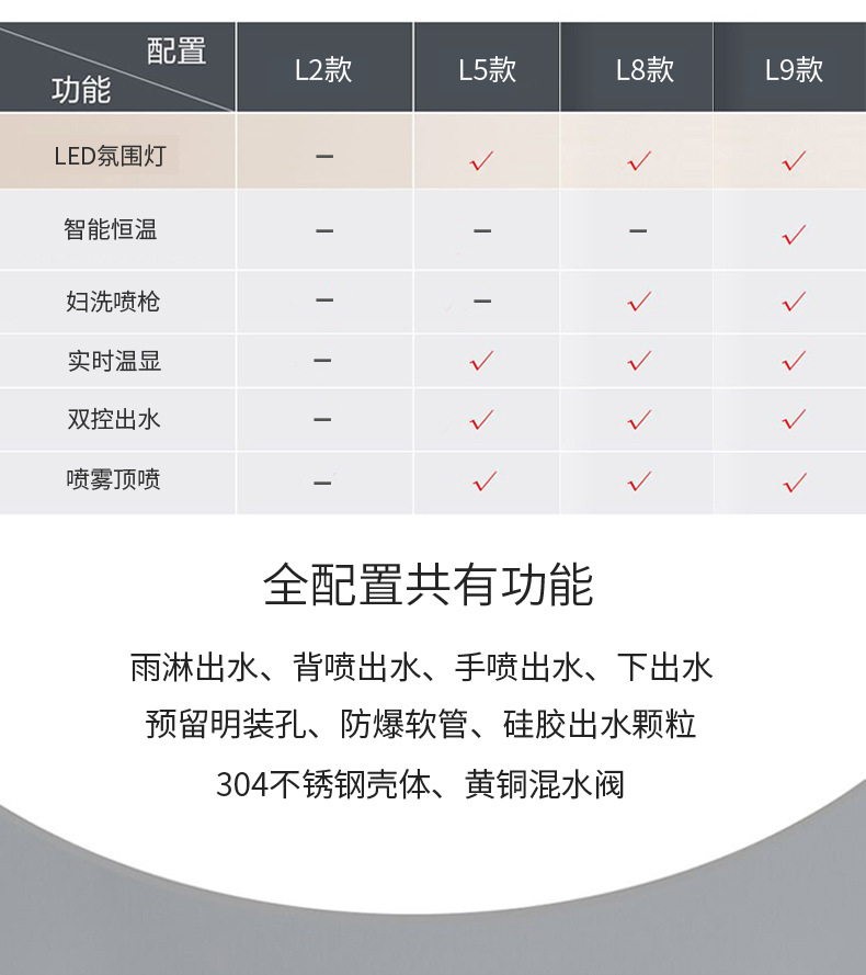 • L9 일정한 온도 자연 색 (일정한 온도 스타일은 태양 에너지, 가스, 고속 난방 온수기에는 적합하지 않습니다)