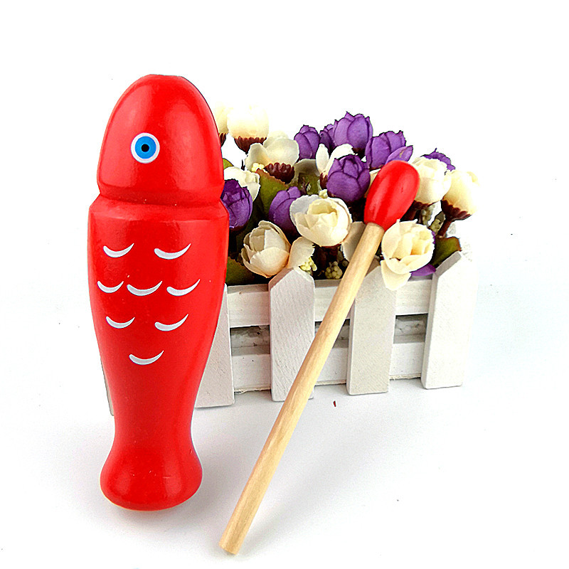 붉은 물고기 모양의 나무 물고기 어린이 타악기 오르프 악기 로그 우드 컬러 방지 링 튜브 음악 교재