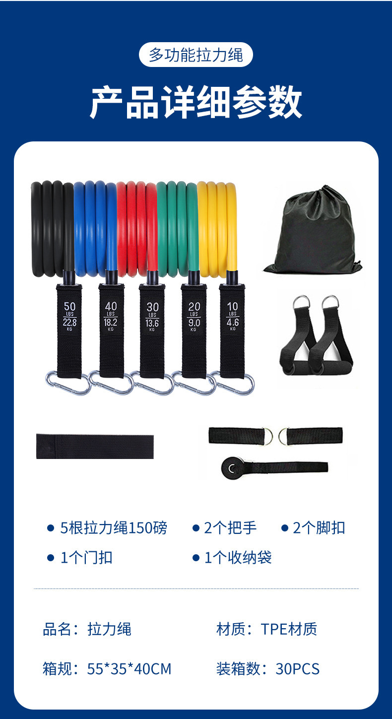 다기능 TPE 11피스 세트 텐셔너, 가슴 확장, 텐션 로프, 가슴 근육 팔 근력 트레이너, 피트니스 슈트 트레이닝