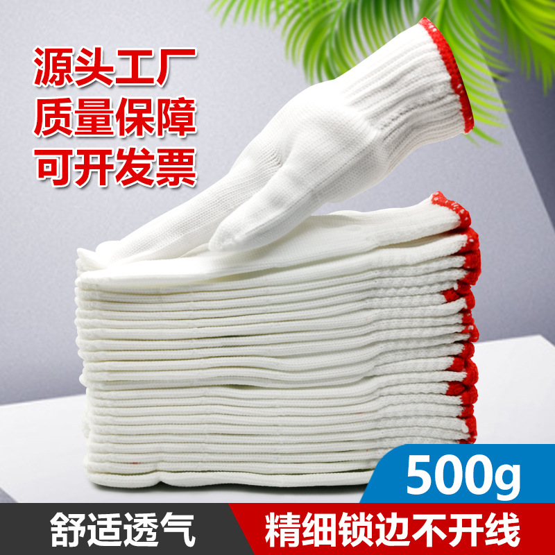 500g/12 화이트 폴리 에스테르 나일론 노동 장갑 착용 장갑 나일론 장갑 보호 장갑 도매스토어 가기