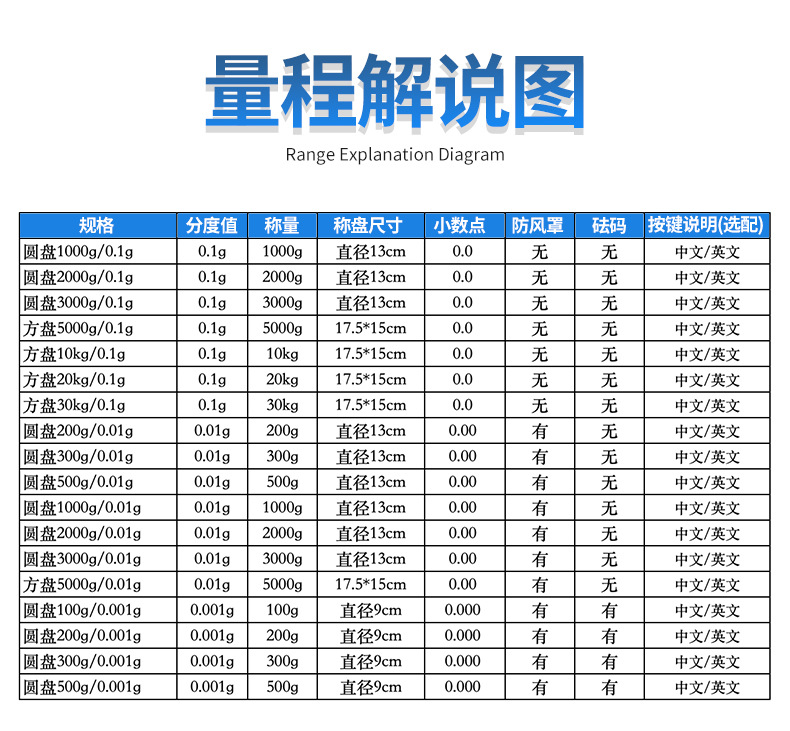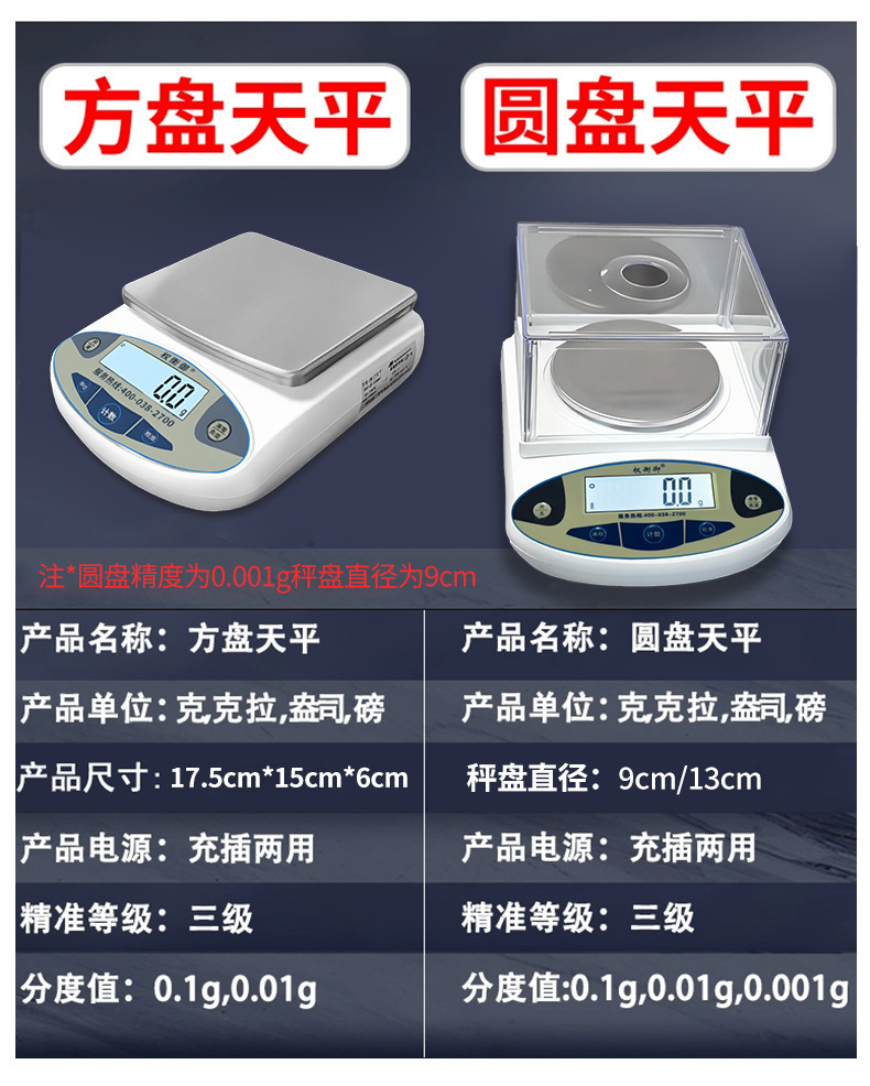 • 사각 접시의 최대 무게는 15kg, 정확도는 0.1g, 대공 커버 없음 [[충전식 버전]]