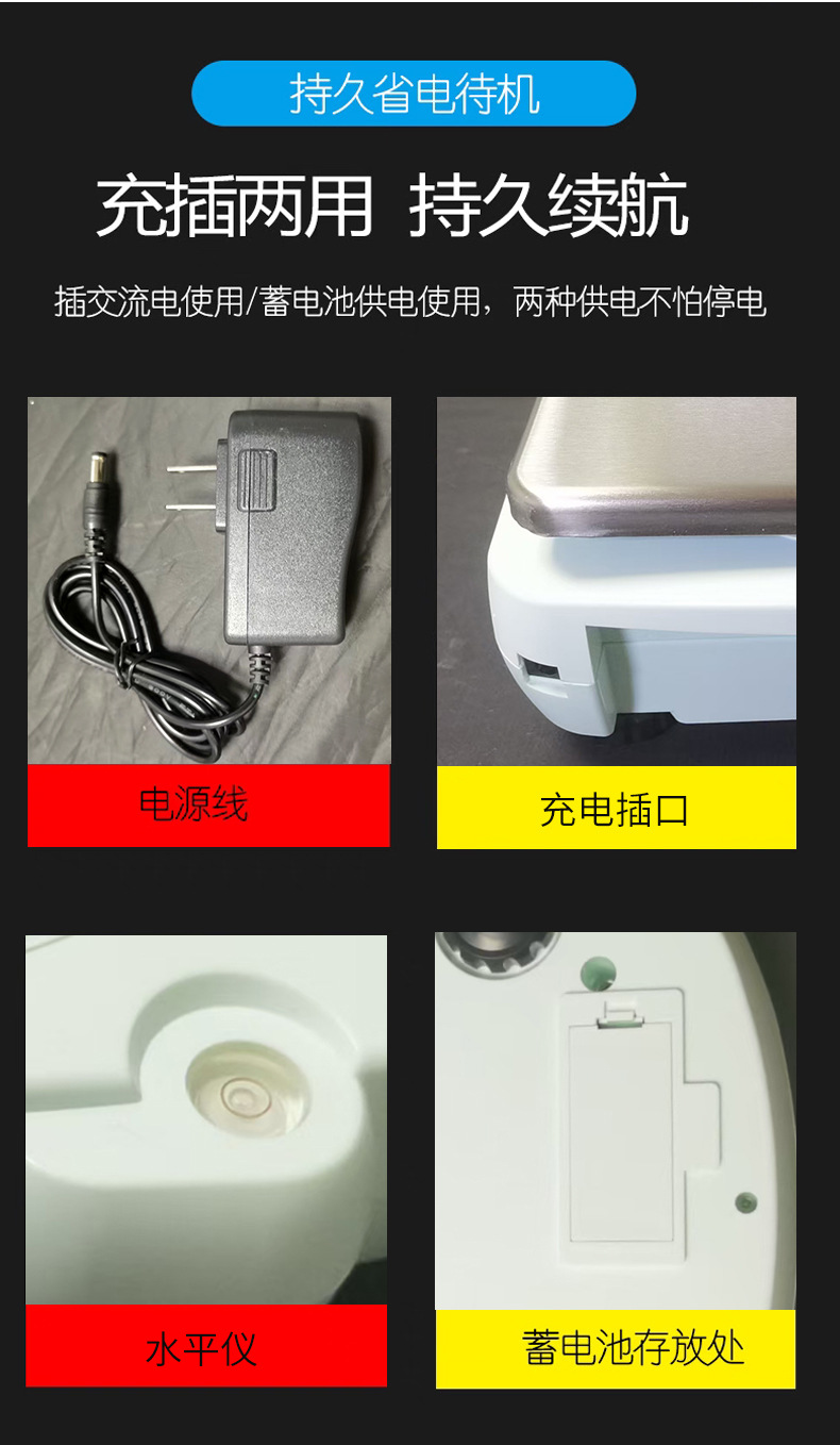 • 사각 접시의 최대 무게는 20kg, 정확도는 0.1g, 대공 커버 없음 [[충전식 버전]]